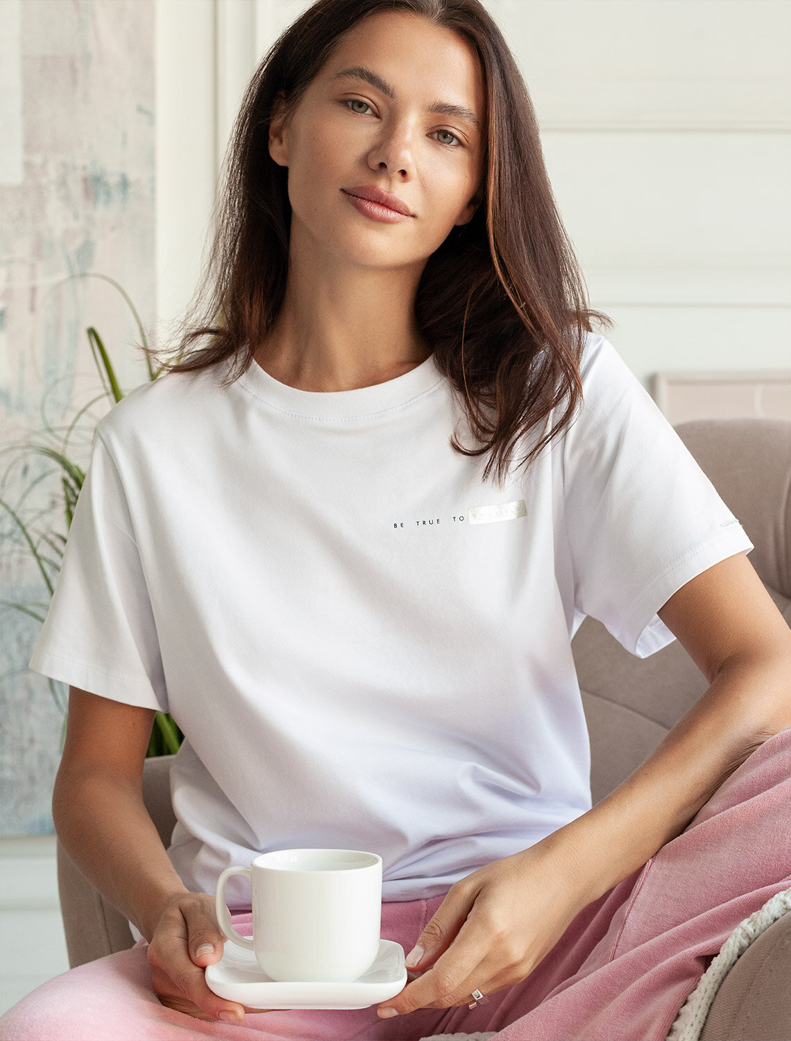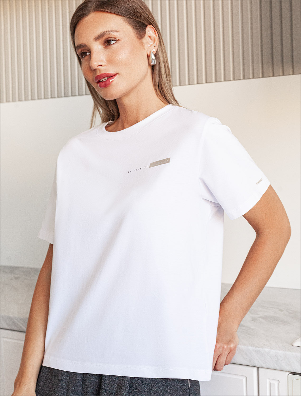 Перевод надписи: «Не всегда нужен план. Иногда просто нужно сделать вдох, довериться, и ты увидишь, что произойдет» Футболка выполнена из премиального хлопка. Крупная надпись выполнена красками, маленькая - золотой фольгой с устойчивым покрытием. Наличие эластана в составе способствует комфорту и формоустойчивости, помогая сохранить изделие в течении долгого времени в идеальном состоянии. Модель дополнена фирменным металлическим логотипом бренда.