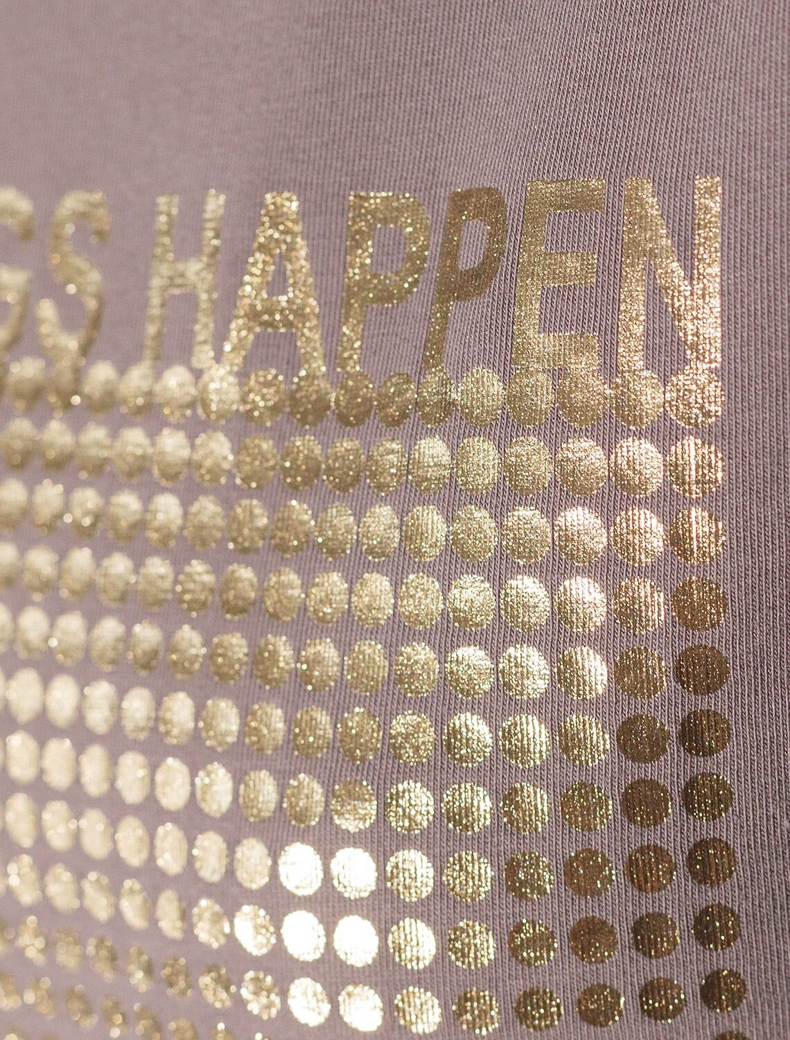 Футболка кофейного цвета идеально подходит для вечеринки и создания яркого образа. Оригинальный принт из фольги золотистого цвета придает изделию шикарный вид, который привлечет внимание на любом мероприятии. Модель с круглым вырезом и классическим коротким рукавом обеспечивает свободу движений и комфорт в носке. Такой фасон изделия подходит на большие размеры, гармонично сидит на фигуре и помогает создать легкий акцент на достоинствах. Аккуратный круглый вырез красиво подчеркивает шею и делает образ элегантным, сохраняя актуальность для разных случаев — от рабочих встреч до вечерних прогулок и праздничных мероприятий.