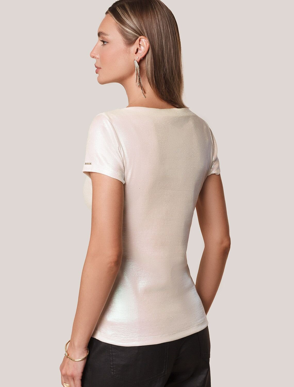 Повседневная футболка универсальна: она сочетается с джинсами, юбками или строгими брюками — легко создать как деловой образ для офиса, так и наряд для вечеринки или ужина вне дома. Матовое покрытие создает благородный блеск без лишней яркости, благодаря чему футболка смотрится свежо и актуально.