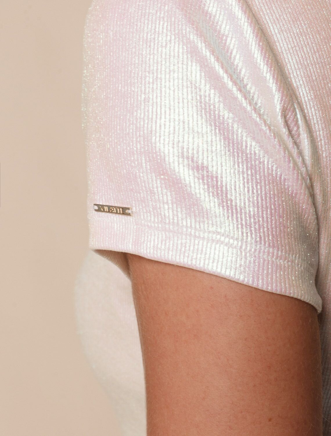 Стильная футболка перламутрового цвета с вырезом лодочка выполнена из премиального хлопка с добавлением эластана. Эффектное матовое покрытие металлик придает футболке изысканный блеск. Вырез лодочка добавляет элегантности и женственности образу. Мелкий рубчик визуально вытягивает силуэт, за счет эластана в составе материал прекрасно тянется и садится на любую фигуру, в том числе большие размеры. Ткань износостойкая, сохраняет свой превоначальный вид даже после многочисленных стирок, отличается мягкостью и приятными тактильными ощущениями, такой материал не раздражает кожу, дарит ощущение уюта даже при длительном ношении, а воздухопроницаемость позволяет коже свободно дышать.
