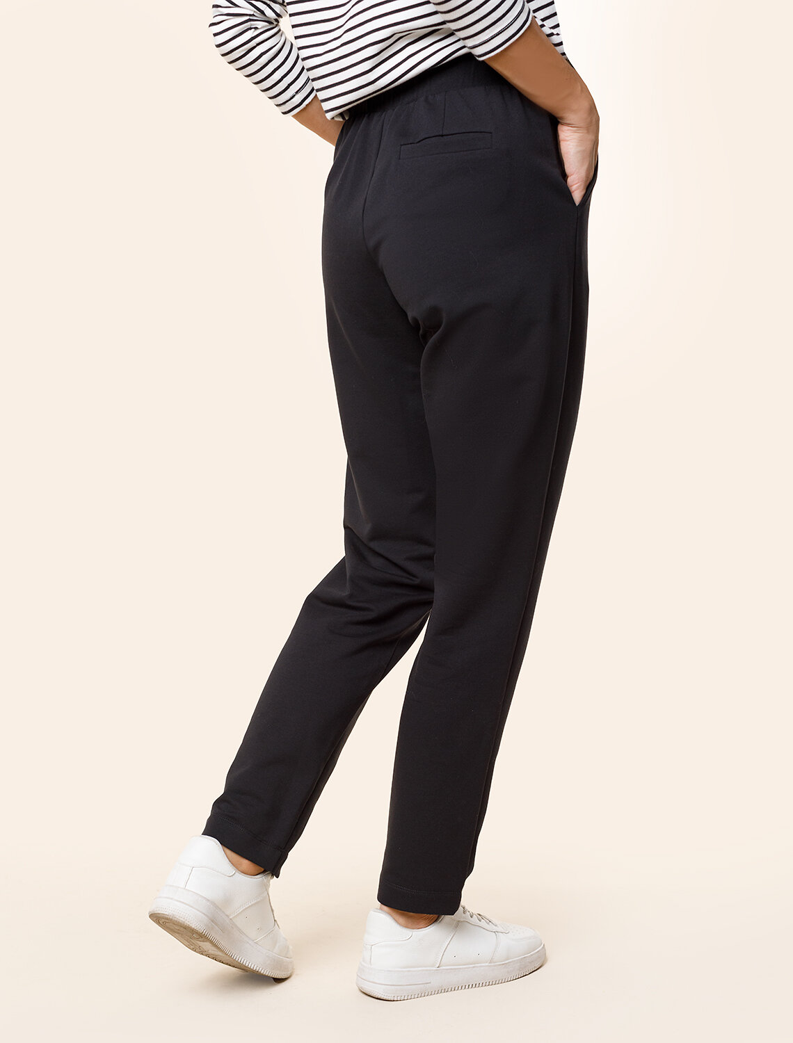 Брюки выполнены из премиального хлопка с эластаном. Лаконичная модель дополнена эластичным поясом на резинке, двумя боковыми карманами и одним задним карманом. Мягкий хлопковый эластичный трикотаж хорошо пропускает воздух и поддерживает оптимальный микроклимат. Изделие универсально подойдет для спорта, повседневного аутфита и домашней одежды.