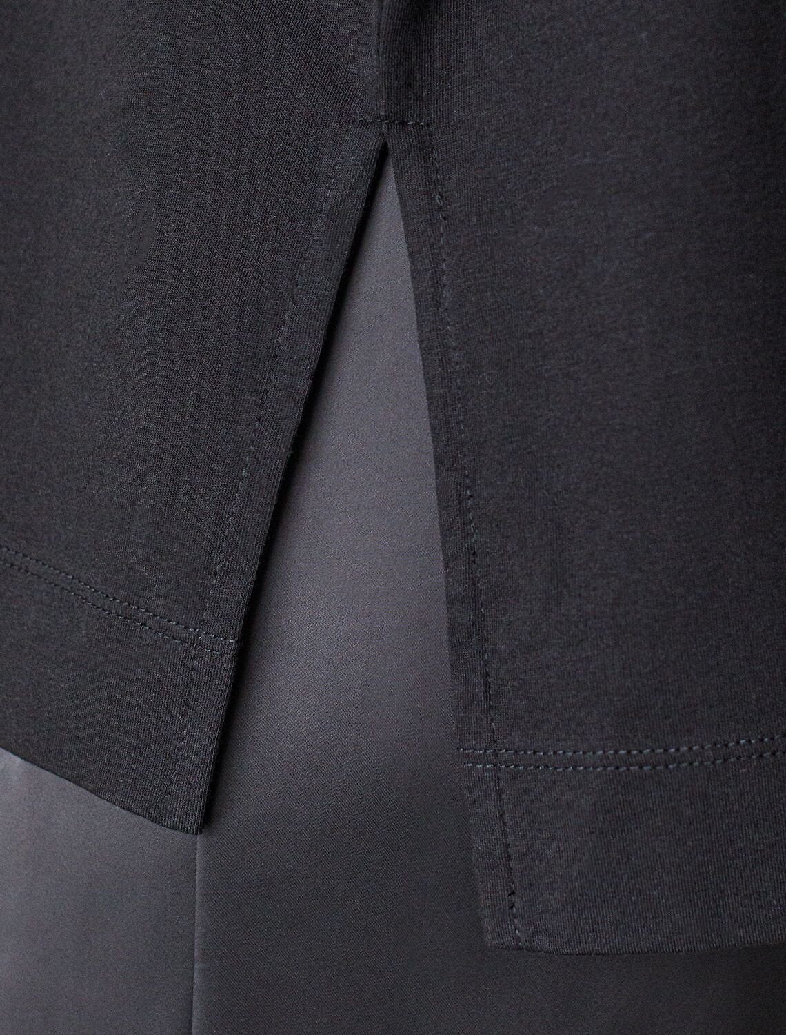 Такая эффектная длинная футболка станет универсальным дополнением гардероба, позволяя создавать разнообразные образы с акцентом на современный стиль и утонченность деталей. Благодаря стильному дизайну с боковыми разрезами эта футболка станет идеальным вариантом для создания легких и непринужденных луков.
