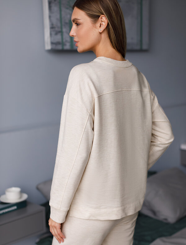 Джемпер со спущенной линией плеча выполнен из премиального хлопка. Модель дополнена разрезами по бокам. Мягкий эластичный хлопковый трикотаж гарантирует исключительный комфорт и уют дома. Идеально сочетается в костюме с шортами D48.006, брюками D44.120 и леггинсами D44.131