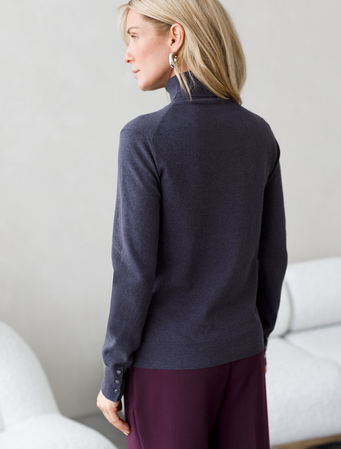 Водолазка тонкой вязки выполнена из хлопка. Лаконичная модель дополнена манжетами с золотистыми пуговицами. Изделие не сковывает движений и подходит для любой фигуры. Мягкая пряжа очень приятная к телу не колется и сохраняет тепло при этом не перегревая.