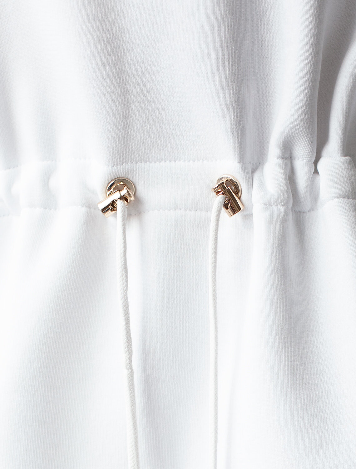 Джемпер выполнен из премиального футера-трехнитки. Модель с начесом дополнена хлопковым шнуром на талии регулируемым стопперами. Регулируя шнурок можно получить сразу две модели, свободный джемпер прямого кроя и дизайнерское решение с акцентом на талии. Соберите костюм вместе с брюками D44.129