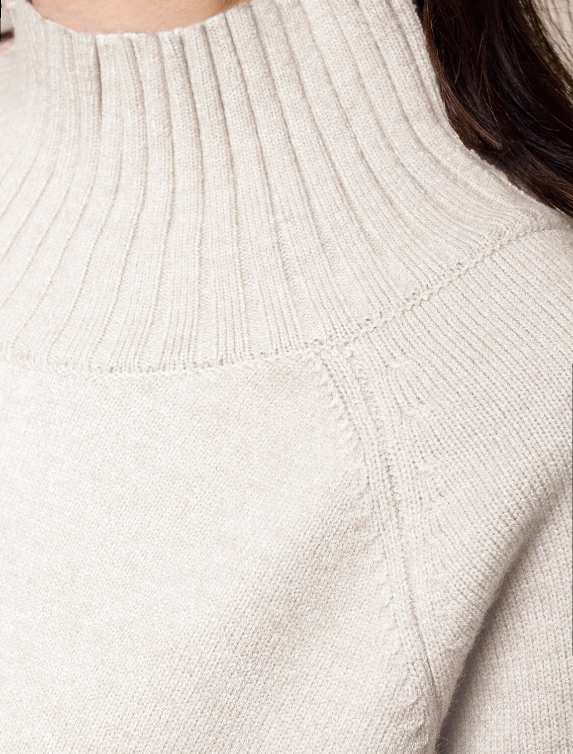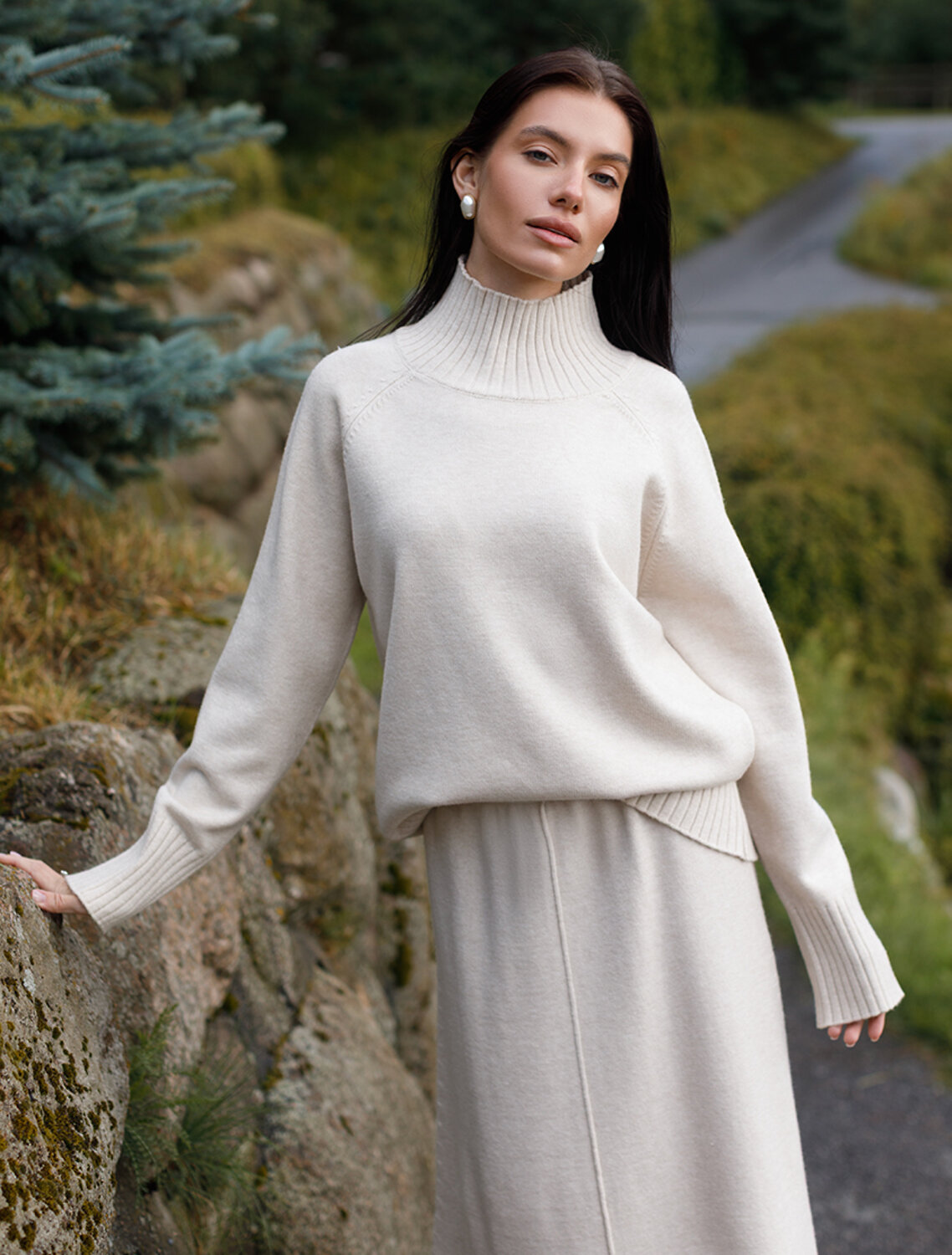Джемпер с воротом стойка выполнен из мягкой меланжевой пряжи с кашемиром. Модель свободного силуэта с рукавом реглан будет стильно сочетается с брюками и джинсами. Мягкая пряжа очень приятная к телу, поддержит комфорт на протяжении всего дня, при этом не перегревая. Сочетается в костюме с брюками D38.013, D38.012 и юбкой D36.016