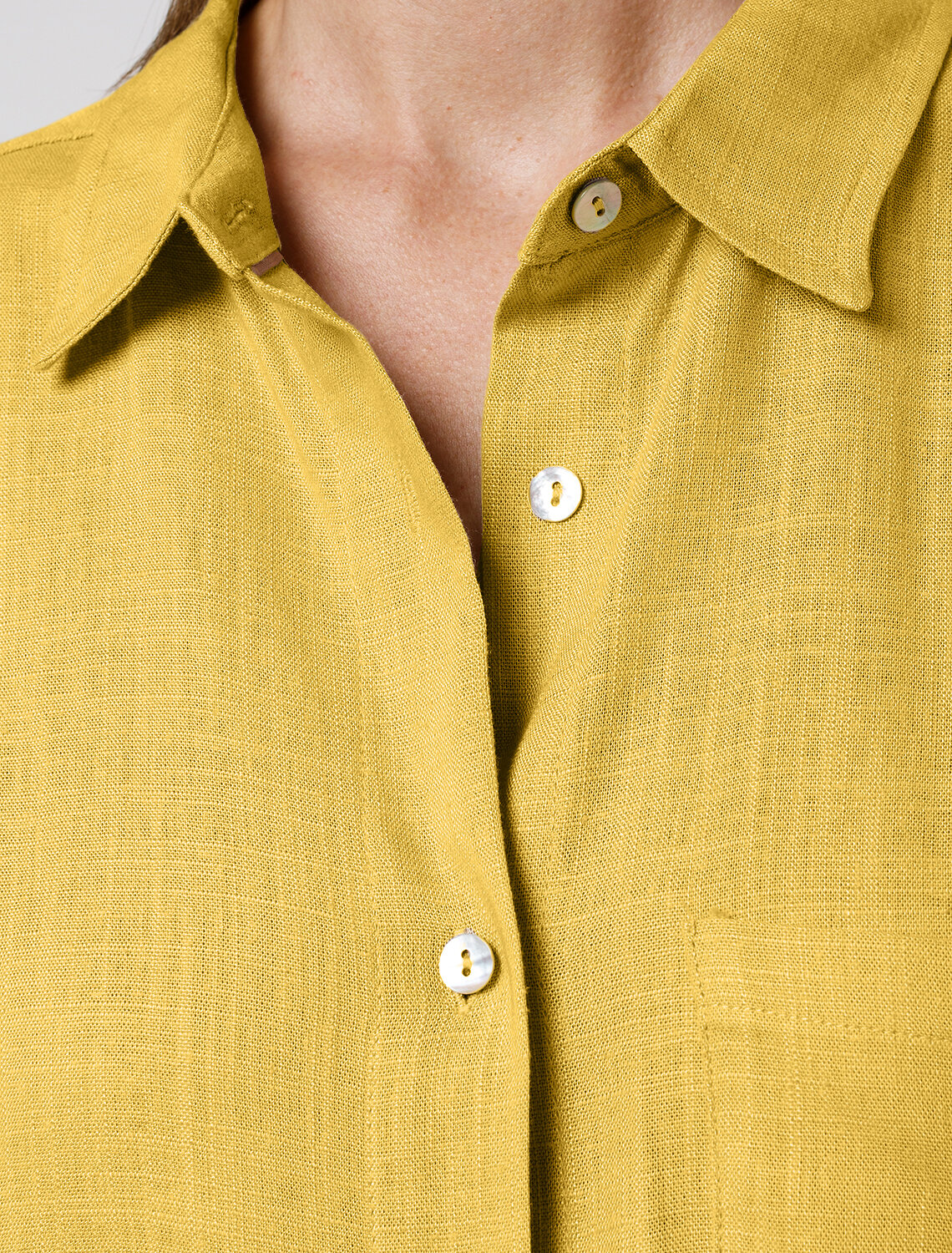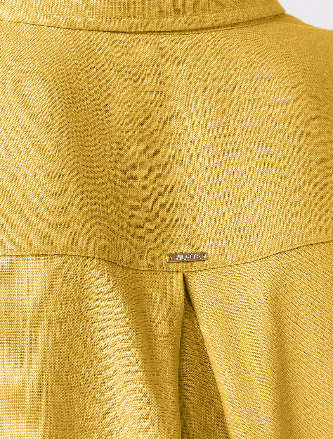 Блузка выполнена изо льна с вискозой. Модель с застежкой на пуговицы из натурального перламутра дополнена сольным карманом. Сочетается в костюме с брюками D24.222 и шортами D28.052. Ткань изящно струится, почти не мнется и сохраняет форму в течении долгого времени, обладает высокой воздухопроницаемостью, обеспечивая комфорт даже в самое жаркое время года.