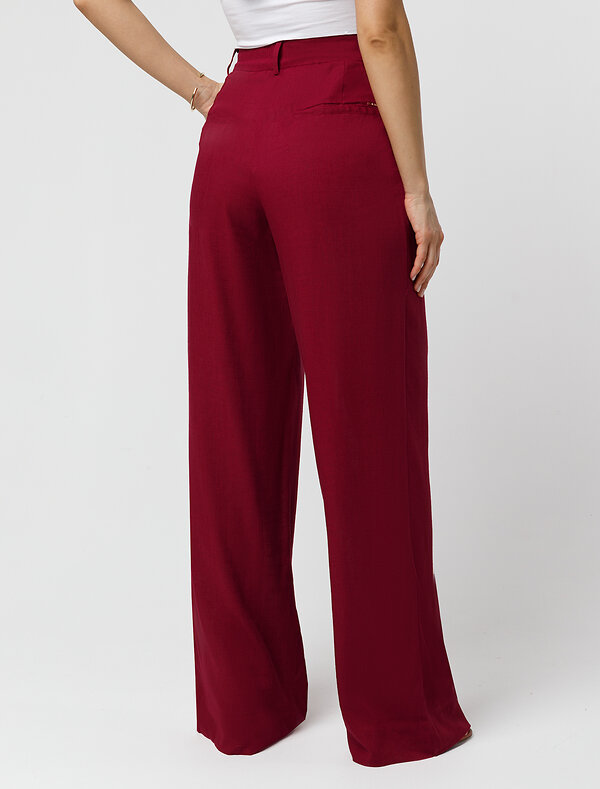 Брюки-палаццо выполнены изо льна с вискозой. Свободная модель с посадкой на талии визуально вытягивает силуэт и создает роскошный образ. Ткань изящно драпируется, струится по ногам, почти не мнется и сохраняет форму в течении долгого времени. Резинка на поясе. Подходит для любой фигуры и скрывает недостатки. Сочетается в костюме с топом D23.060 и блузками D29.237, D29.244