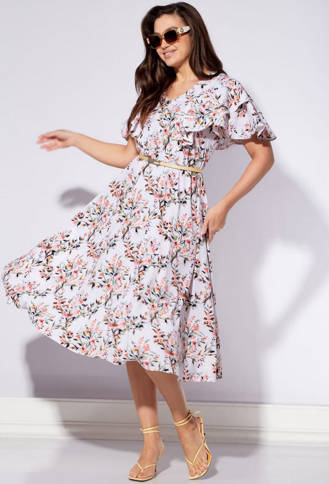 Платье Viola Style 01042 молочный цветы
