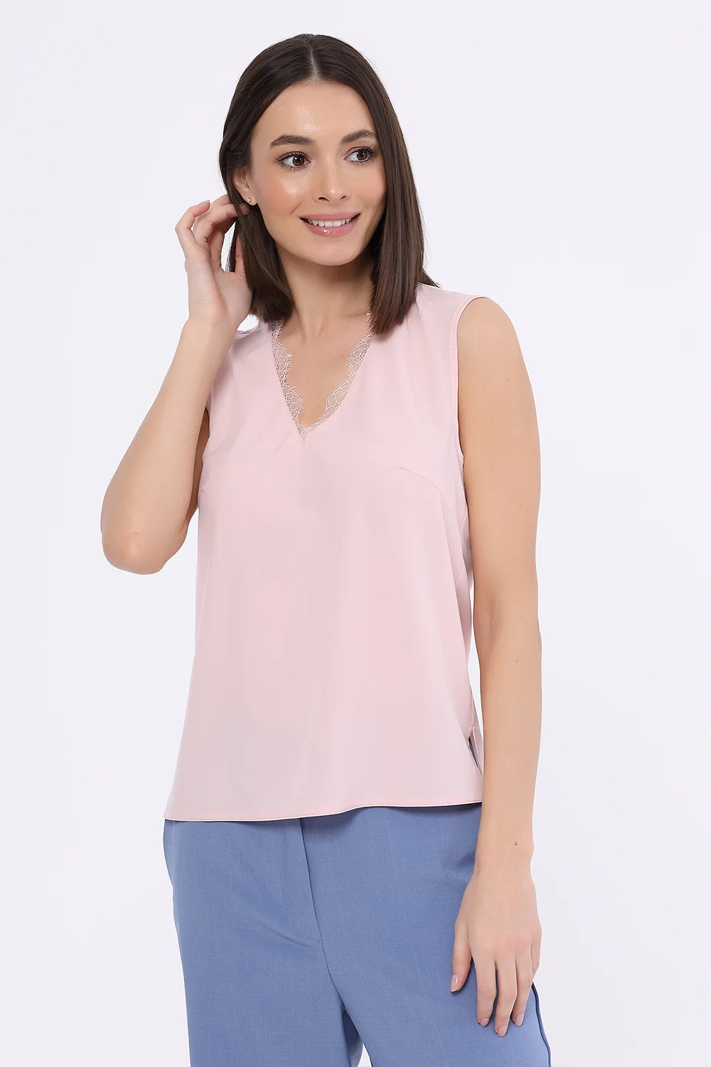 Блузка с кружевной горловиной без рукавов