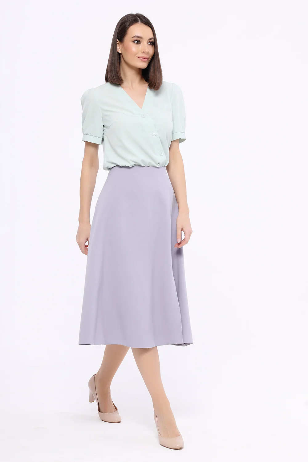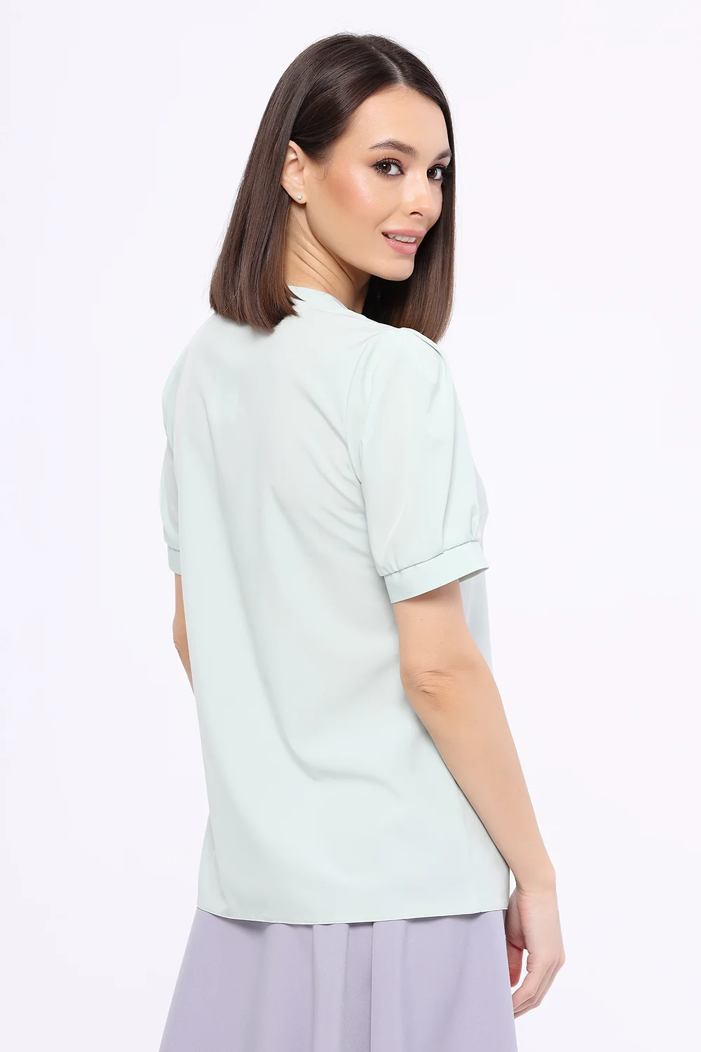 Блузка прямого кроя гармонично впишется в офисный, повседневный и романтичный стиль. Для завершения офисного образа дополните блузку классическими брюками или юбкой и строгой обувью. Для образа в стиле кэжуал наденьте джинсы и обувь на низком ходу. Свободная блузка с коротким рукавом-фонариком хорошо смотрится и заправленной за пояс.