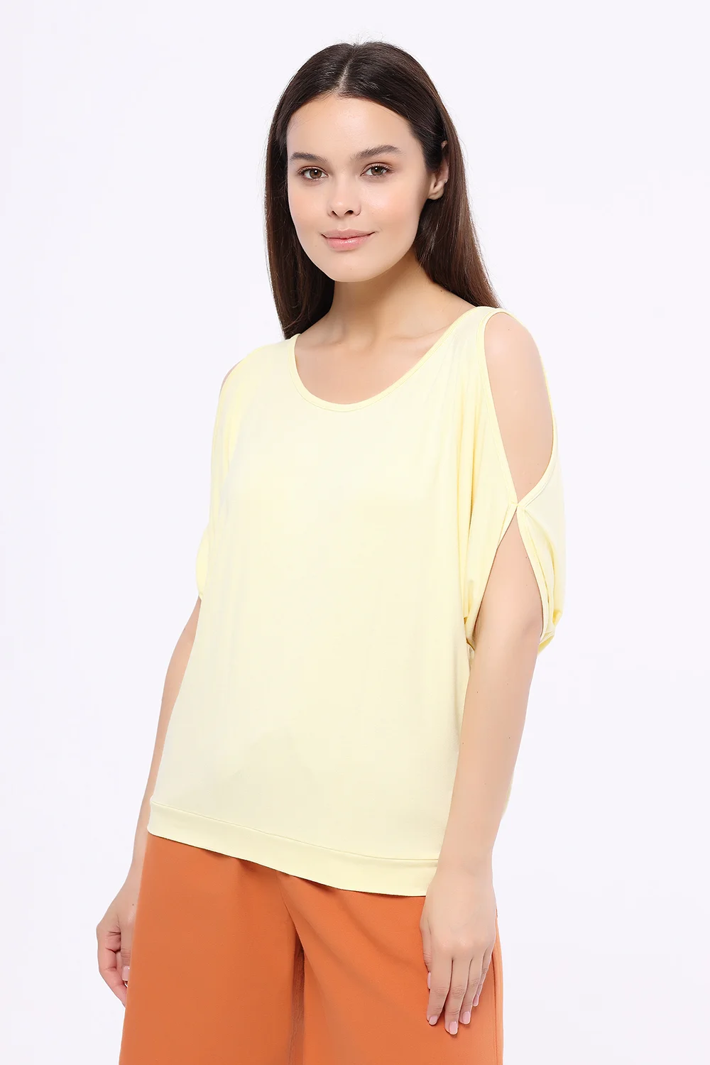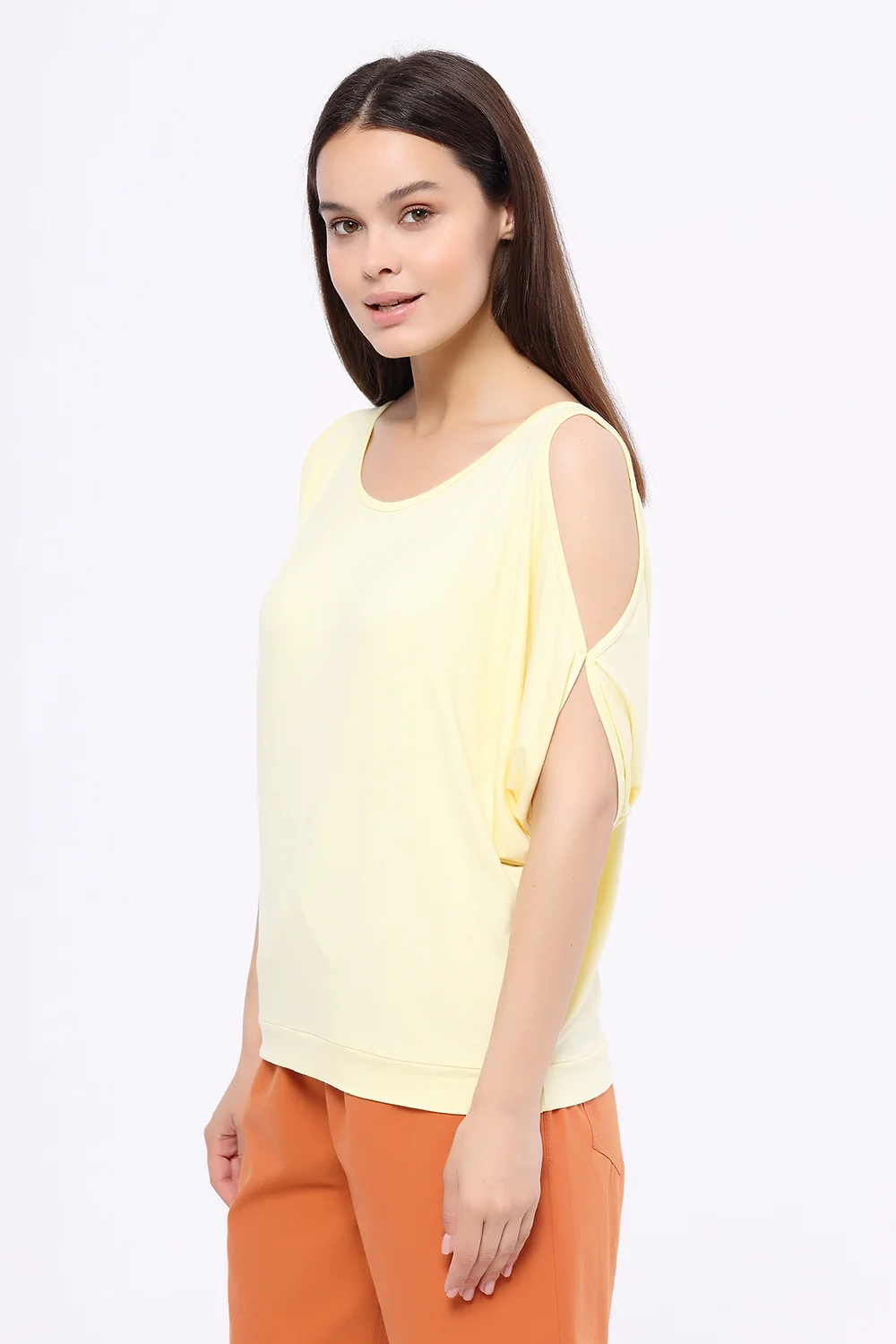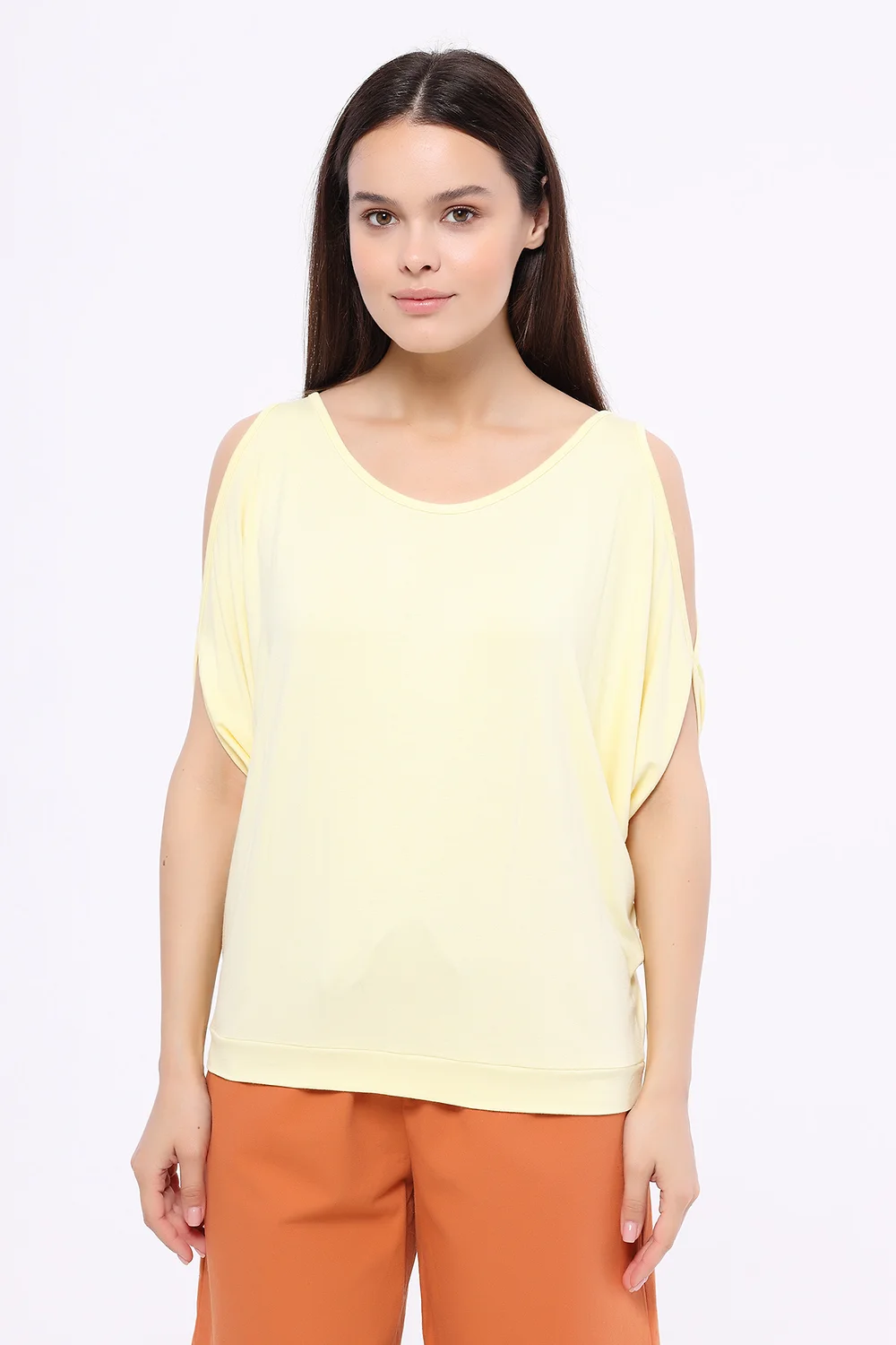 В составе блузки вискоза 95%, лайкра 5%. Вырез горловины - круглый. Длина рукава до локтя. Без застёжки. Конструктивный элемент - вырез на спинке. Крой прямой. Тип рукава - цельнокроеный. Форма рукава - летучая мышь. Детали одежды - выреза на рукавах. Рекомендована стирка при температуре не более 30С.Универсальную блузку прямого кроя Вы сможете надеть и в офис, и на прогулку, и на свидание. Обыгрывая образ различными элементами, Вы сможете создать разное настроение. Классические брюки и юбки сделают образ более строгим, а джинсы или шорты дополнят повседневной образ в стиле кэжуал.