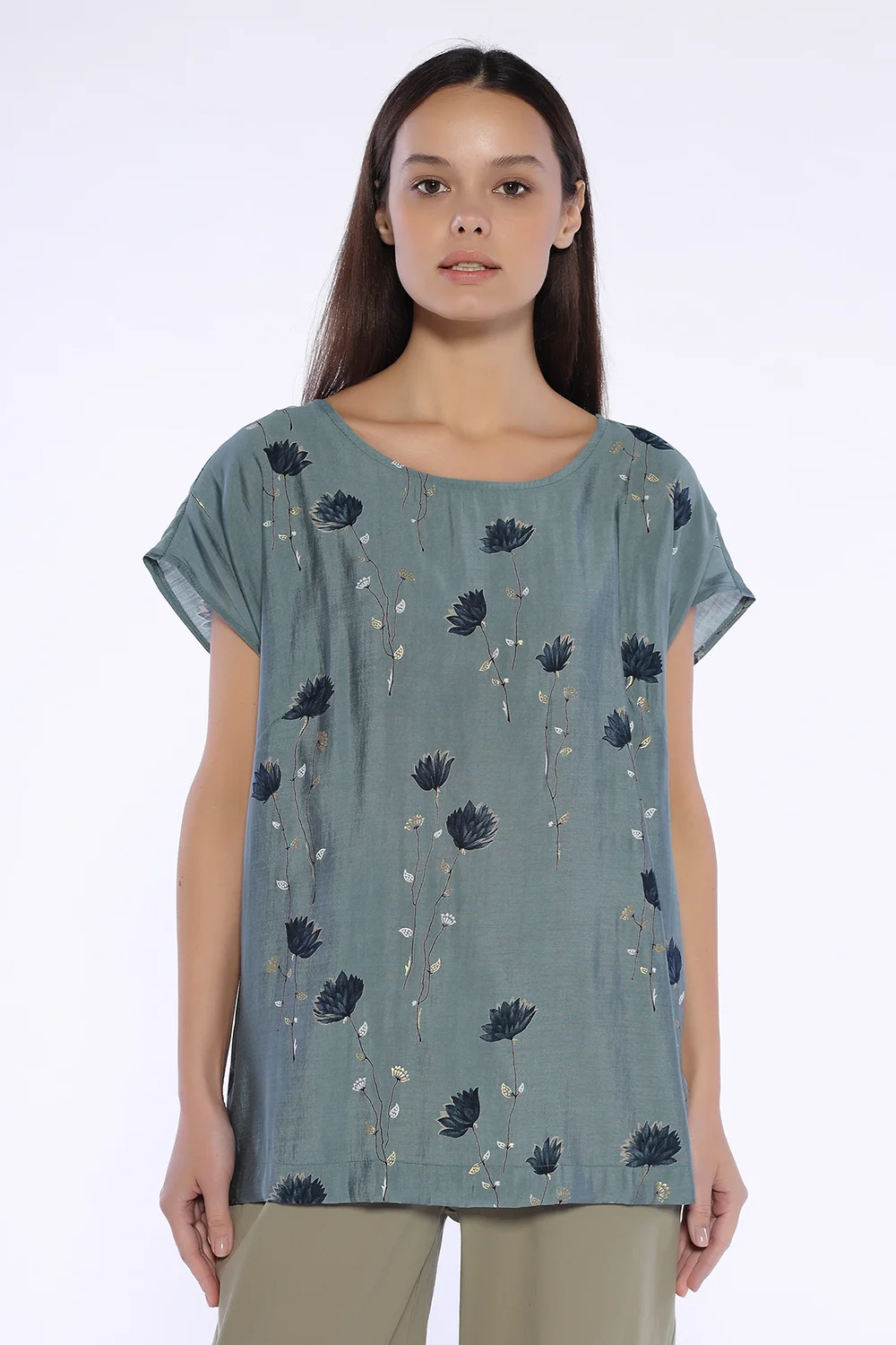 Летняя блузка оверсайз станет важной частью Ваших образов в жаркий сезон. Свободная округлая горловина не давит и позволяет изящно обыграть шею различными шейными украшениями. Короткие цельнокроеные рукава не облегают руки и не сковывают движений. Удлиненная кофточка имеет декоративные разрезы по бокам. Вы можете носить ее навыпуск или заправленной за пояс. Стильная блузка с коротким рукавом выполнена из легкой струящейся наощупь вискозы. Летняя блузка из вискозы обеспечит прохладу даже в знойный сезон, и Вы будете чувствовать себя уверенно и комфортно на протяжении всего дня. Блузку с принтом Вы можете носить на работу в офис, на прогулку, на свидание или на торжественное мероприятие. Сочетайте кофточку с комплектными брюками из нашей коллекции, юбкой или шортами. Обувь и аксессуары выбирайте исходя из повода и события. Это могут быть классические и строгие элементы или наоборот повседневные в стиле кэжуал. Базовая летняя блуза подойдет как взрослым женщинам, так и молодым девушкам, а благодаря широкому прямому крою ее по достоинству оценят будущие мамы.