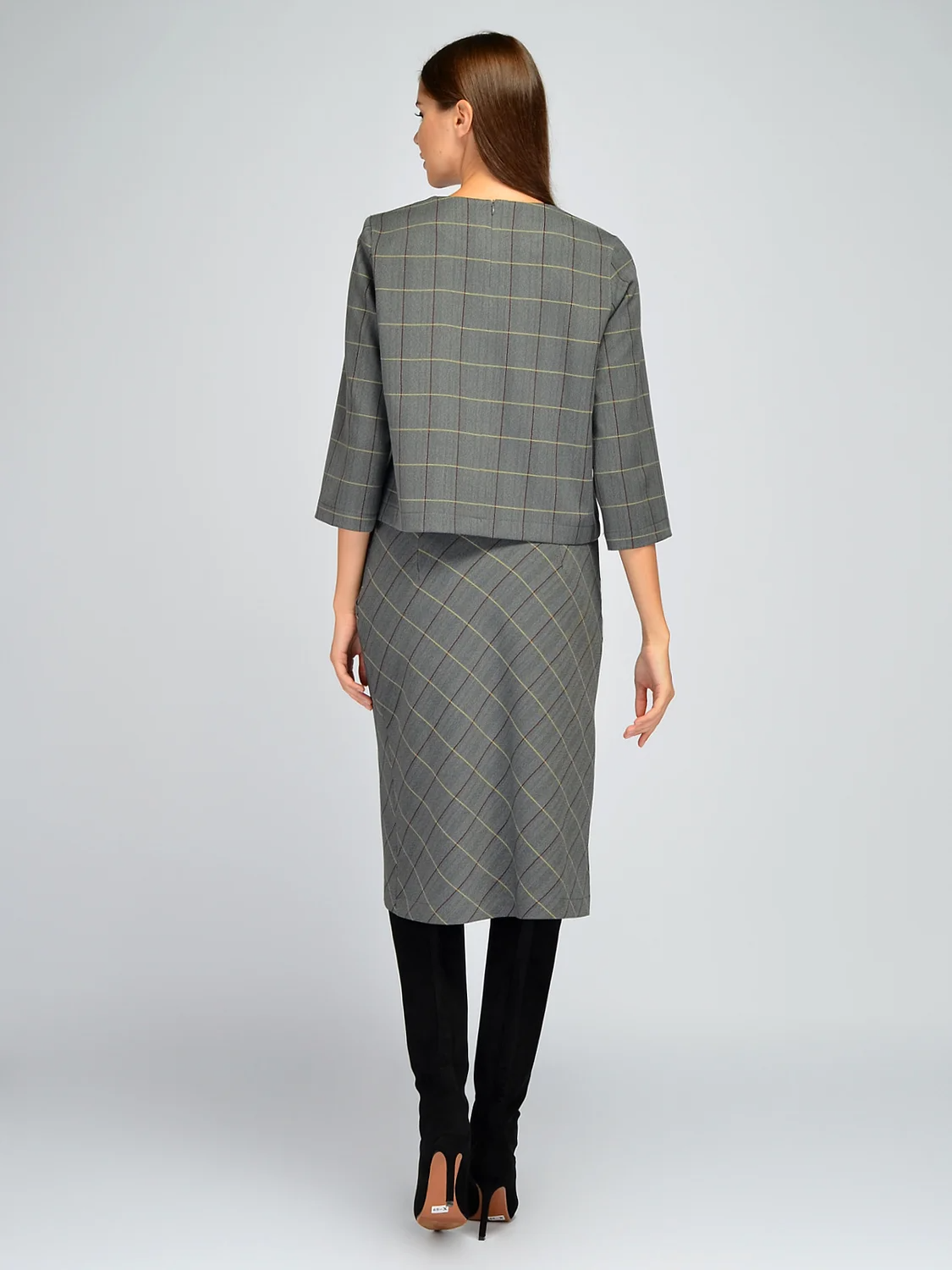 Свободная блузка в клетку станет важной частью Вашего гардероба в прохладное время года. Изящный округлый вырез горловины не давит на шею, а вытачки на груди позволяют изделию прекрасно сидеть на любой фигуре. Изделие имеет широкие укороченные рукава, которые не сковывают движения и не мешают в течение дня. Данная модель застегиваются на потайную молнию на спине. Стильная клетчатая блузочка идеально сочетается с комплектной юбкой из нашей коллекции, создавая гармоничный законченный образ для работы, деловой встречи или торжественного события, если обыграть комплект подходящими аксессуарами и украшениями. Базовую модель в благородных расцветках легко комбинировать с различными предметами из Вашего гардероба. Это могут быть однотонные брюки или юбки разных фасонов, обувь на высоком или низком ходу. Изделие выпускается в широком размерном ряду, предусмотрены большие размеры. Универсальная модель придется по вкусу как молодым девушкам, так и взрослым женщинам, которые предпочитают строгий и при этом женственный стиль.