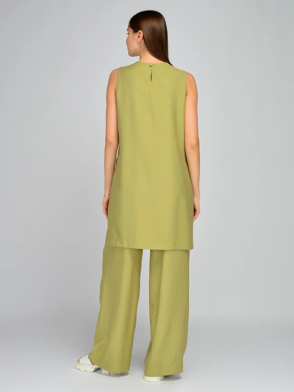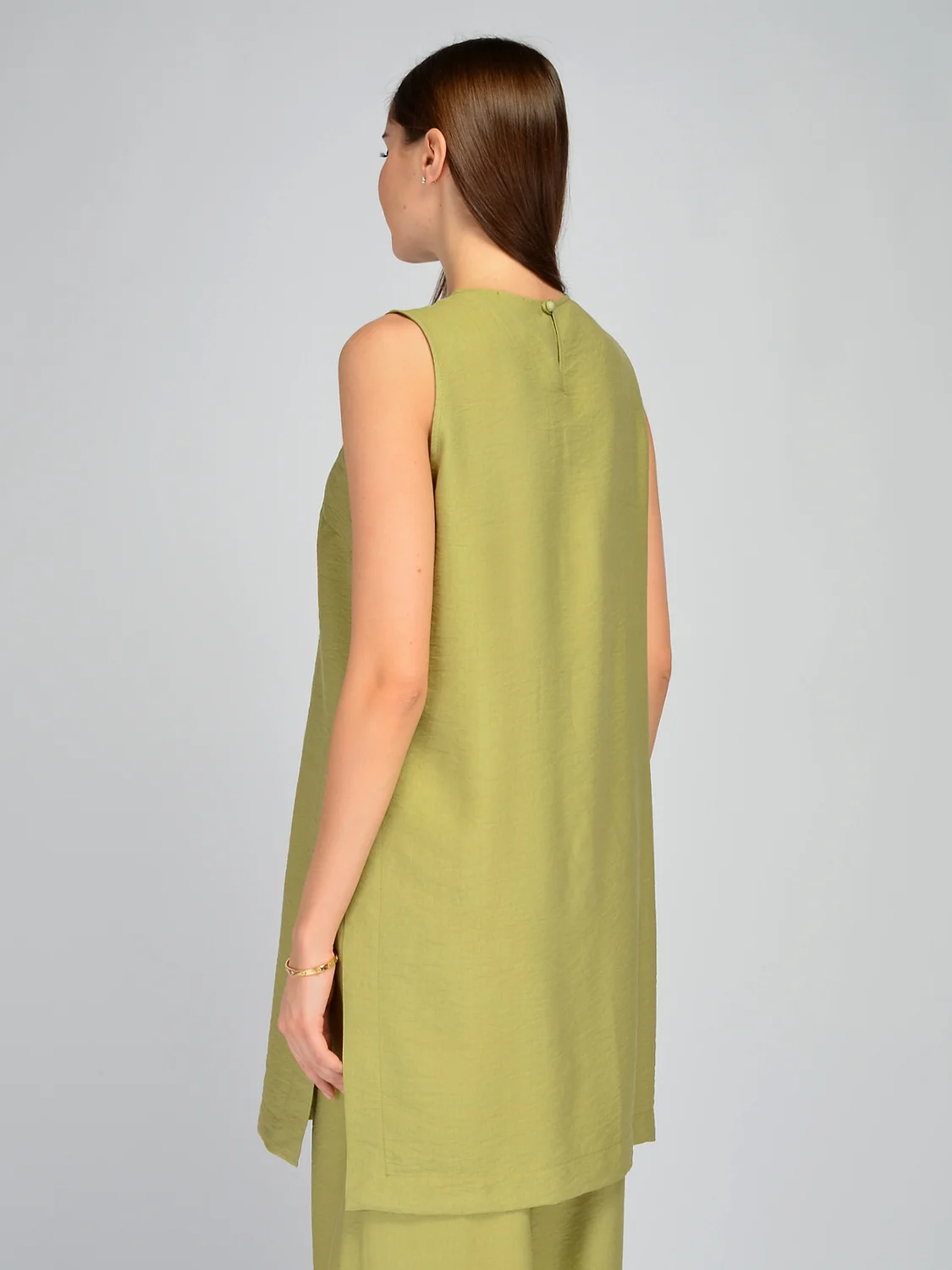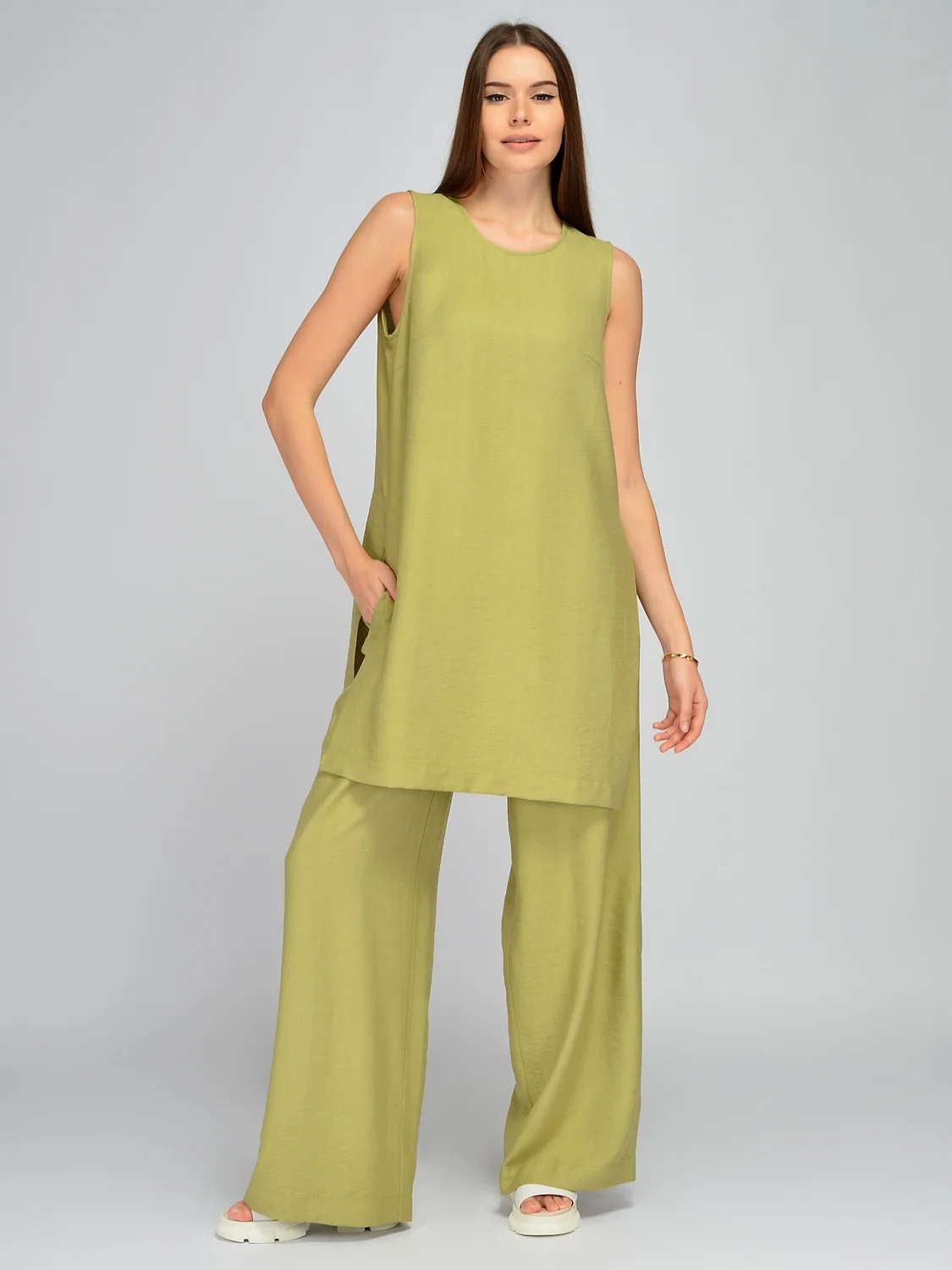 Длинная летняя блузка станет эффектным дополнением Ваших образов в жаркий сезон. Блузка выполнена из тонкой ткани с эффектом жатости, в которой Вы будете чувствовать себя комфортно на протяжении всего дня. Ткань, из которой выполнена модель, практически не мнется, сохраняя опрятный внешний вид, и элегантно струится в движении. Блузка имеет округлый вырез горловины. У модели нет рукавов, что добавит свободы движениям и практично в жару. Длинная свободная футболка без рукавов имеет вытачки, благодаря чему модель прекрасно сядет даже на пышные формы. Блуза имеет свободный крой, не облегает фигуру и скрывает возможные недостатки фигуры. Благодаря своей длине модель визуально вытягивает силуэт. По бокам располагаются глубокие декоративные разрезы. Дополните блузу комплектными брюками из аналогичной ткани из нашей коллекции или подберите юбку, шорты или кюлоты. Блузу можно носить как на работу каждый день, так и на прогулку, взять с собой в отпуск или выбрать ее для торжественных или культурных мероприятий летом.
