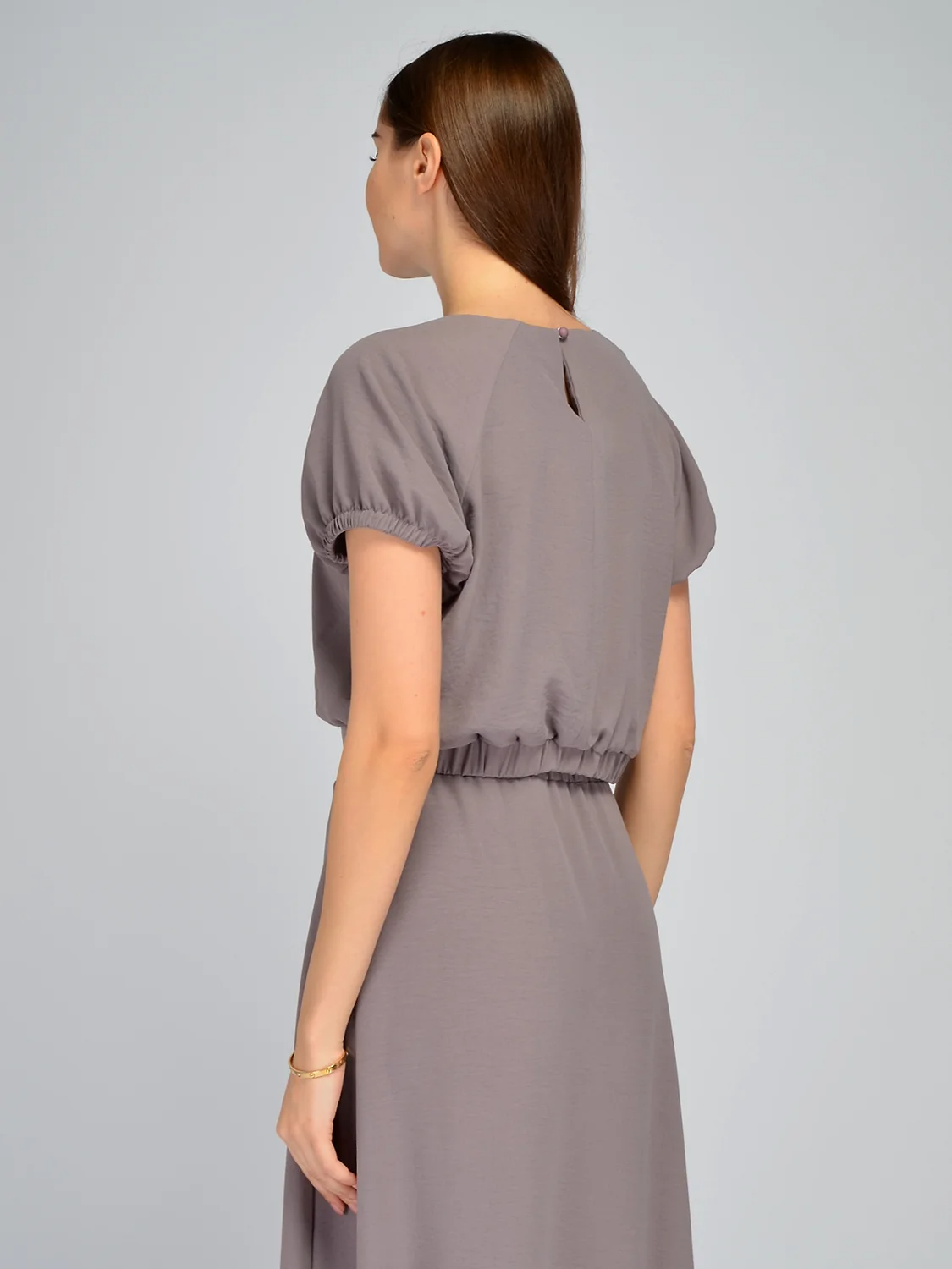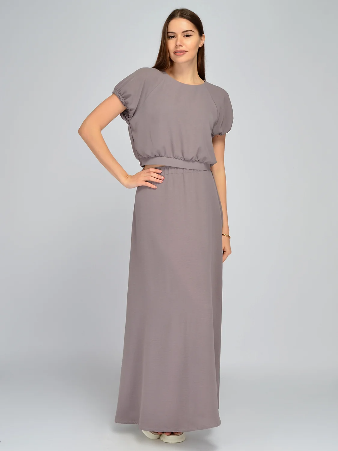 Свободная блузка с коротким рукавом станет элегантной новинкой в Вашем летнем гардеробе. Блуза имеет укороченную длину, тем самым подчеркивая талию и создавая гармоничные пропорции фигуры. Сзади на талии предусмотрена резинка. У футболки округлый вырез горловины, который не давит на шею и добавляет скромности образу. Рукава покроя реглан свободные, обрамлены нетугой резинкой, чтобы держали форму фонарика. На спинке находится изящная застежка на пуговицу с разрезом капелька, что подчеркнет Вашу женственность и романтичность. Летняя блузка идеально сочетается с юбкой макси с разрезом из нашей коллекции. Базовая укороченная блузка станет частью как повседневных, так и праздничных образов, а также подойдет для культурных мероприятий и деловых встреч летом. Модель выполнена из приятной легкой ткани, не облегает фигуру и обеспечит особый комфорт в жаркий сезон. Удобный универсальный крой подойдет девушкам и женщинам разного роста и комплекции. Не забудьте завершить образ подходящими украшениями и аксессуарами.
