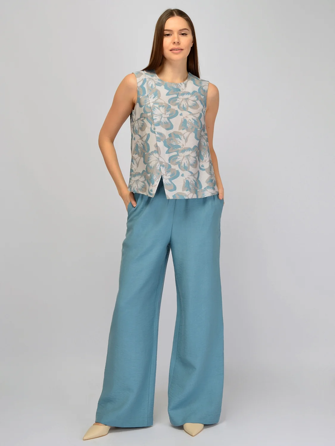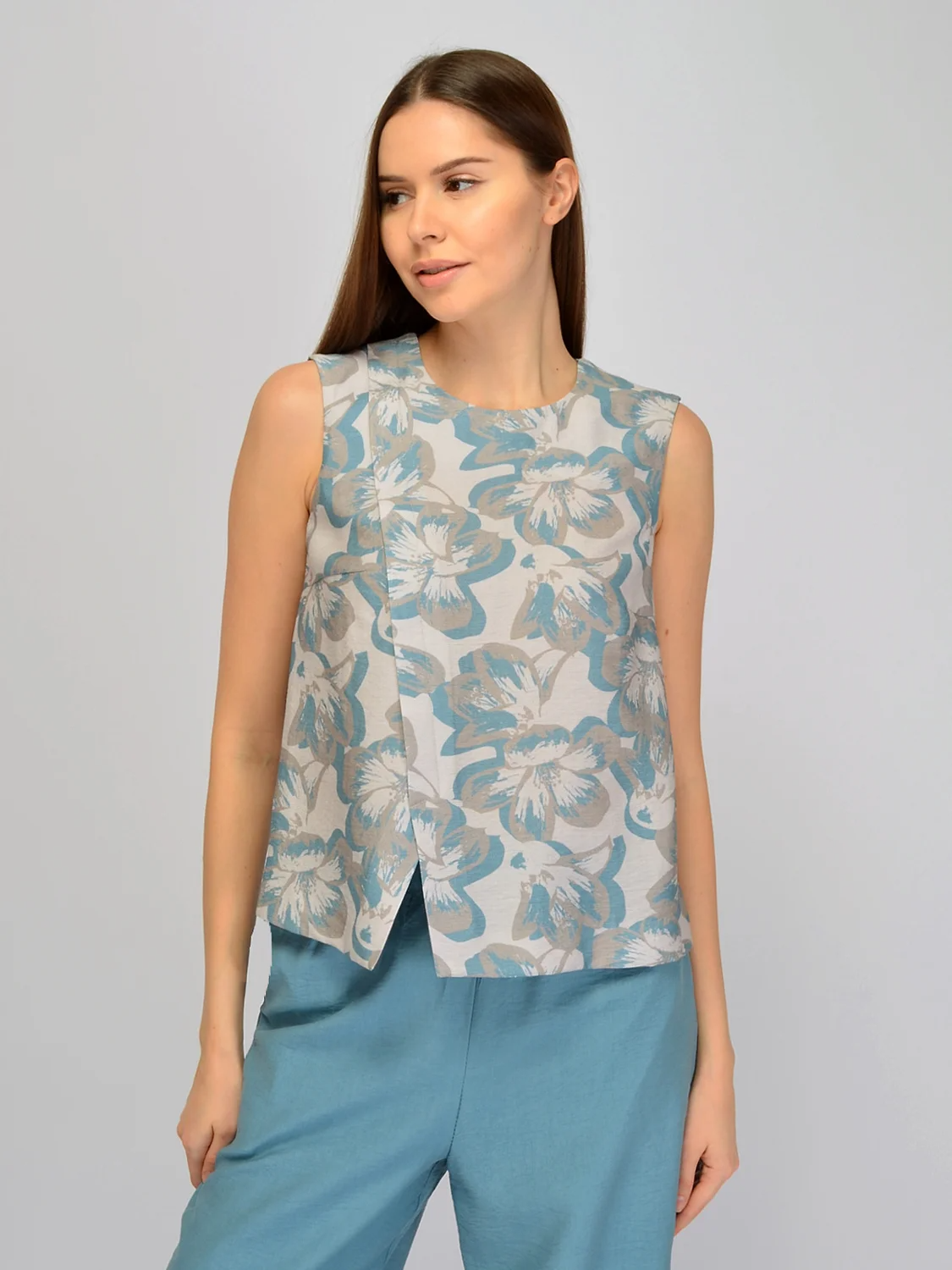 Асимметричный топ свободного кроя выигрышно дополнит разнообразные летние образы. Аккуратный округлый вырез горловины не давит на шею и придает определенной строгости топу. На свободной майке предусмотрены вытачки на груди, чтобы модель идеально села на любые параметры. Блуза асимметричного кроя с треугольным вырезом внизу подчеркнет Вашу индивидуальность и дополнит стильные образы, которые захочется рассматривать. Классический топ прямого кроя не облегает фигуру, позволяя коже дышать и чувствовать Вам себя комфортно на протяжении всего дня. Летняя блузка без рукавов поможет составить повседневные и нарядные образы. Легкую тунику с принтом лучше дополнить однотонным поясным изделием. Современные расцветки футболки без рукавов будут привлекать внимание и сделают ваши образы яркими и привлекательными. Оригинальный крой легкого топа позволяет комбинировать его с лаконичными изделиями. Летняя блуза без рукавов придется по вкусу как взрослым женщинам, так и молодым девушкам!