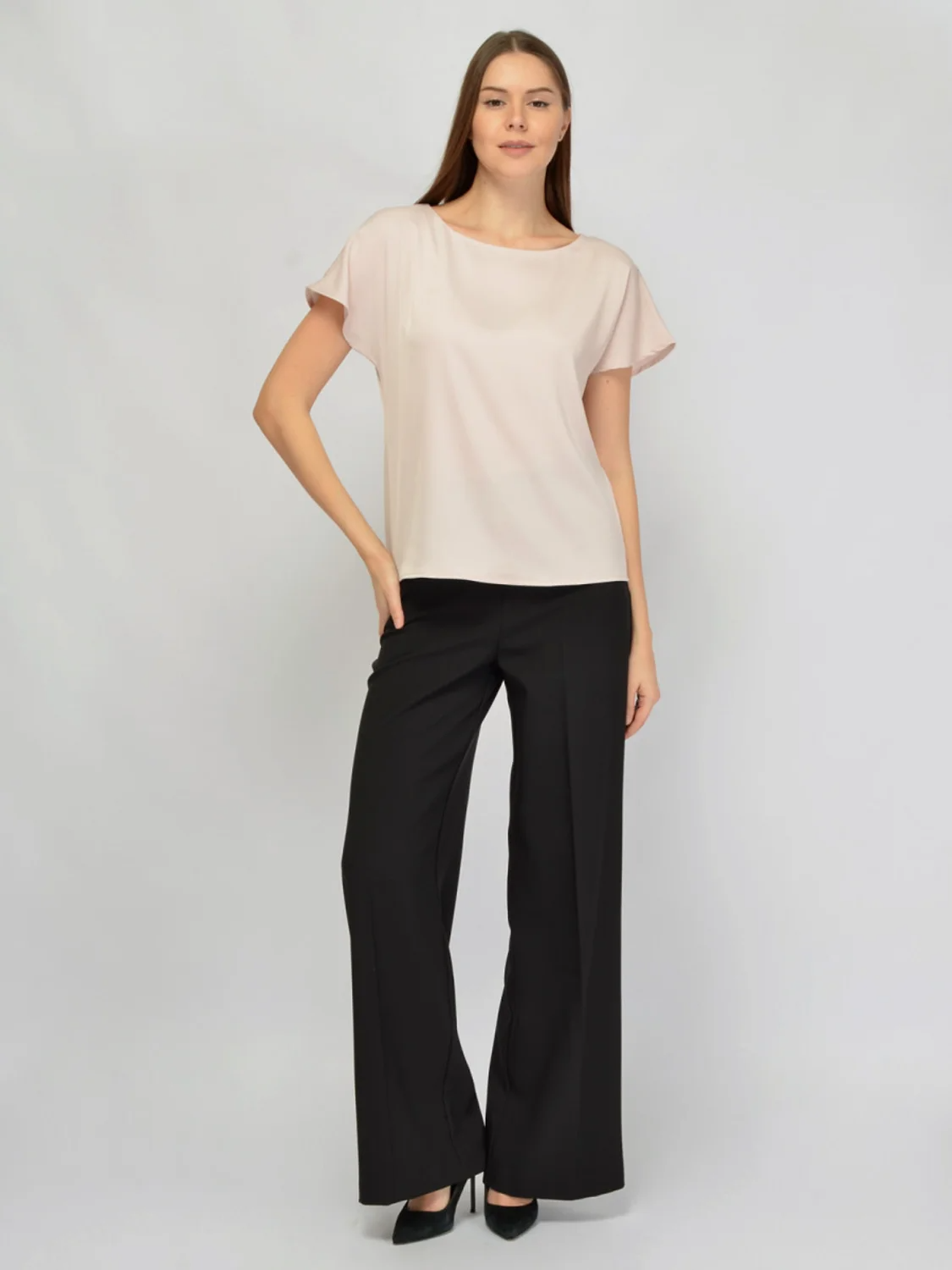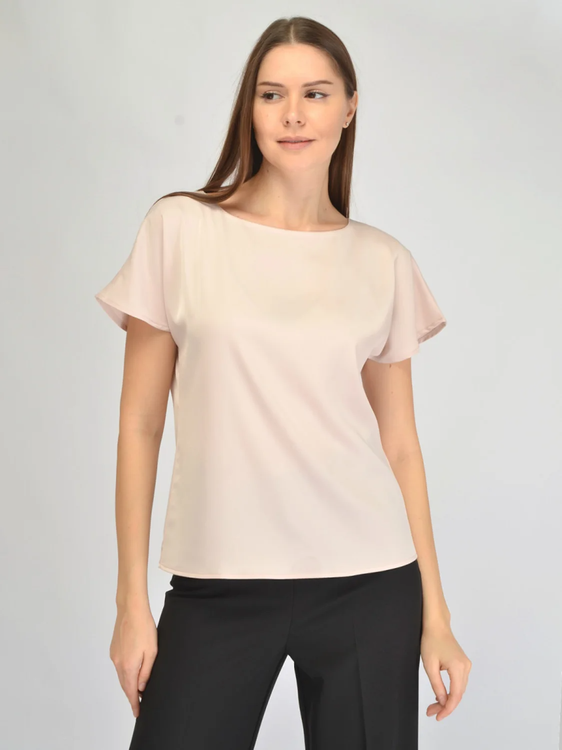 Атласная блузка женская средней длины с коротким рукавом – элегантный аксессуар гардероба, способный украсить каждую представительницу прекрасного пола независимо от возраста и телосложения. Нарядная блузка выполнена из качественного плотного искусственного шелка, благодаря чему отличается роскошью и мягкостью материала. Свободный крой придает образу легкость и комфорт, позволяя наслаждаться каждой минутой ношения. Вырез формы «лодочка» подчеркивает красоту шеи и ключиц, создавая утонченный образ. Эта базовая женская блузка идеально подходит для повседневной носки, официального мероприятия или праздника, гармонично дополняя ваш гардероб . Универсальная майка с открытыми плечами Приталенная блузка в классическом стиле прекрасно дополняет летний, весенний, зимний и осенний гардероб. Нарядный топ из блестящего шелкового атласа станет настоящей находкой для всех женщин и девушек, желающих выделяться среди толпы. Будь то офисные будни, молодежная вечеринка, свадьба подруги или торжественный вечер, эта великолепная вещица сделает вас особенной и привлекательной. Оригинальная базовая блузка под пиджак позволяет сочетать этот нежный элемент одежды с различными видами аксессуаров и украшений, подчеркивая индивидуальный стиль своей обладательницы. Топ отлично смотрится на девушках любого роста и комплекции, украшая фигуры высоких дам, средних красавиц и миниатюрных леди. Стильная блузка непременно займет достойное место в вашем гардеробе, радуя каждый день своим привлекательным внешним видом и превосходным качеством изготовления. Базовая универсальная блузка станет идеальным дополнением вашей коллекции вещей, ведь она способна разнообразить любые привычные повседневные и офисные образы, превратив обычный комплект в эффектный и романтичный ансамбль.