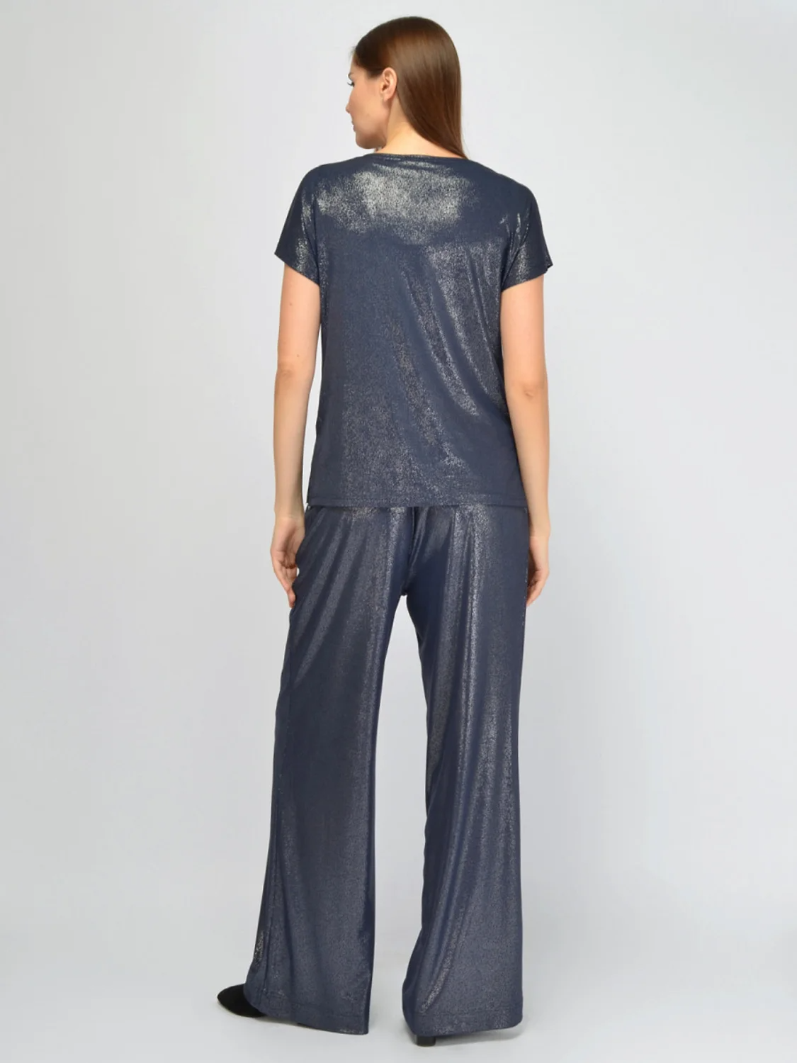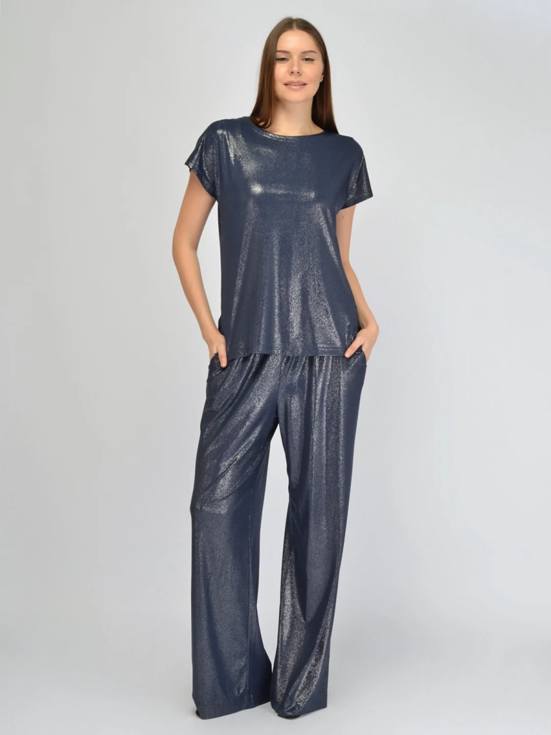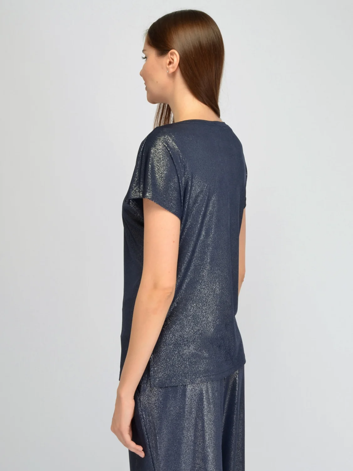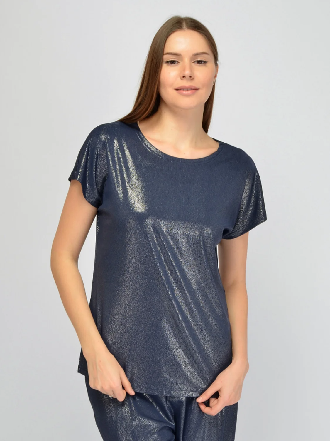 Блестящая блуза с короткими рукавами– это стильная и красивая вещь для женщин. Трендовая футболка выполнена из высококачественного трикотажа, что делает его не только модной, но и удобной в носке. Удлиненная блузка с округлым вырезом горловины придает образу женственность и элегантность. По бокам у нарядной приталенной блузки находятся аккуратные разрезы. Короткий рукав позволяет использовать кофту как базовую вещь в гардеробе, идеально подходящую для создания различных образов. Блестящая блуза станет отличной основой для наряда для праздничного мероприятия: будь то корпоратив, новогодняя вечеринка или юбилей. Она подходит как для повседневного использования, так и для более формальных случаев, благодаря своему универсальному дизайну. Длинная нарядная блузка из приятного тянущегося материала прекрасно сядет на любую фигуру. Элегантная блуза станет незаменимой частью вашего гардероба на все сезоны года: весну, лето, осень и зиму.
