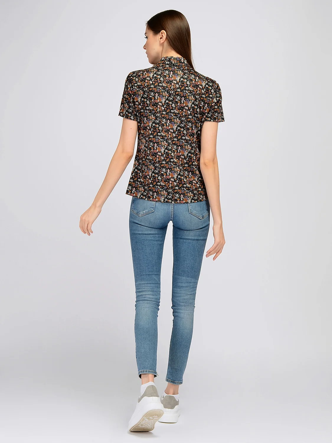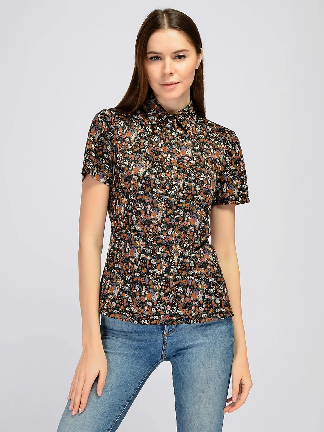 Блузка с отложным воротником.Приталенная блузка с коротким рукавом дополнит офисный или повседневный стиль. Отложной воротник придает образу строгости, а контрастные расцветки добавляют притягательных акцентов. Блузка дополнена декоративными защипами на планке с пуговицами для удобной посадки в груди.Вырез горловины округлый. Отделка горловины воротник. Воротник отложной. Рукава короткие. Рукава втачные. Вид застежки пуговицы. Крой приталенный. Декоративные защипы от планки. Рекомендована стирка при температуре 30С. Создайте свой весенний образ, дополнив блузку с отложным воротником однотонными брюками, юбкой или удобными джинсами. Носите блузку на выпуск или заправленной за пояс. Для делового образа выберите обувь на высоком ходу и жакет. А если собираете городской образ в стиле кэжуал, наденьте удобную обувь на низком ходу и свободный кардиган.