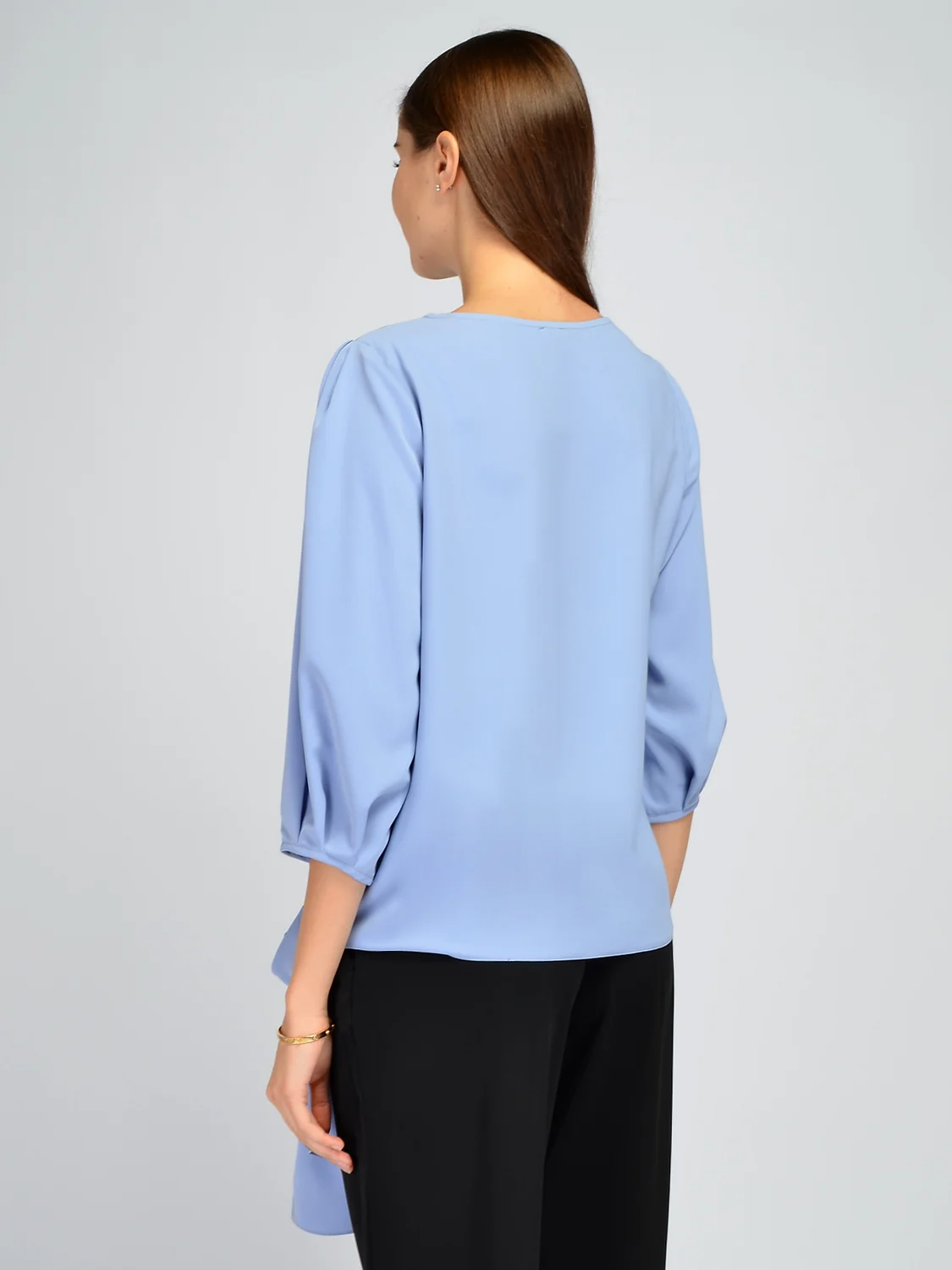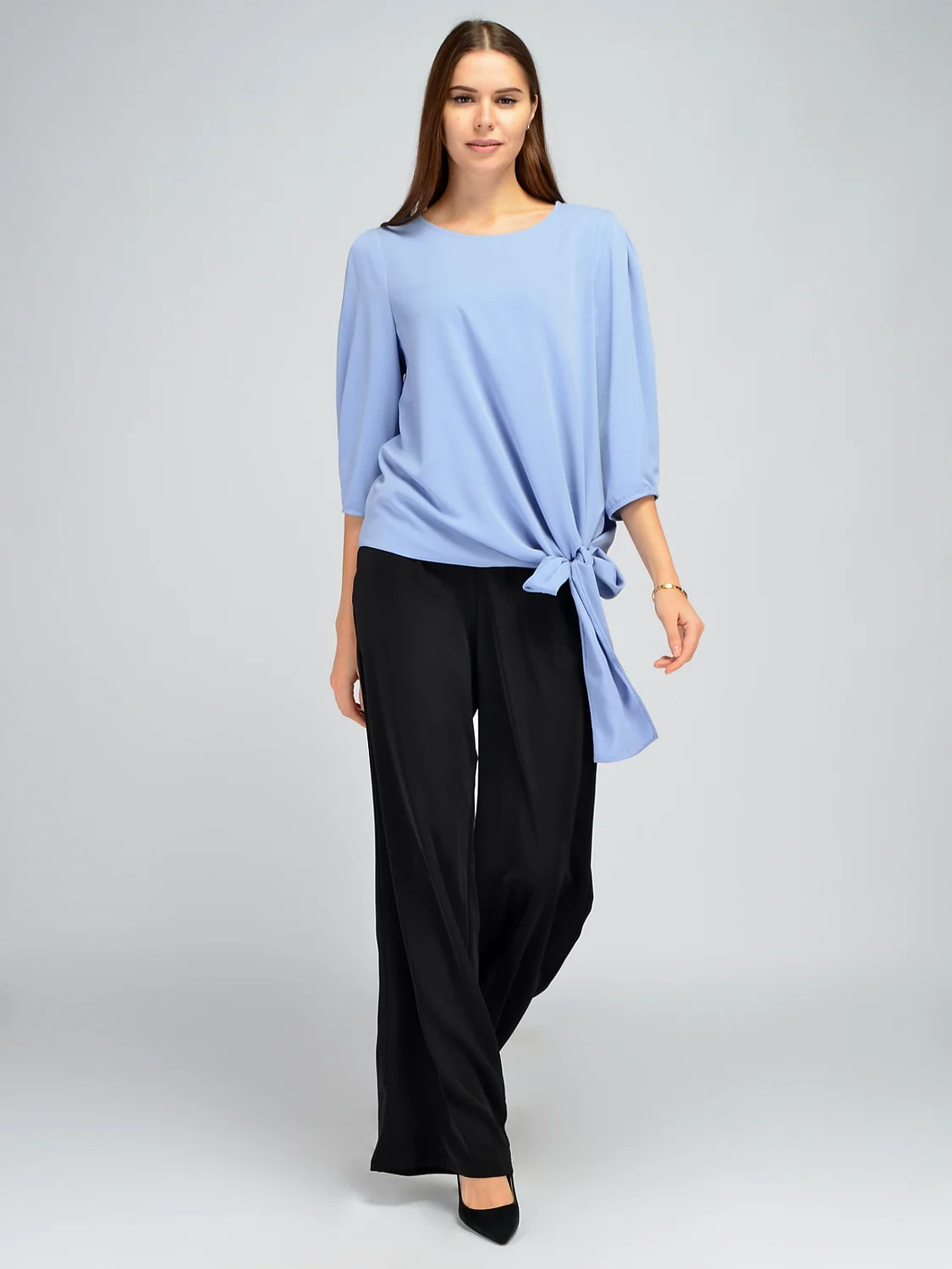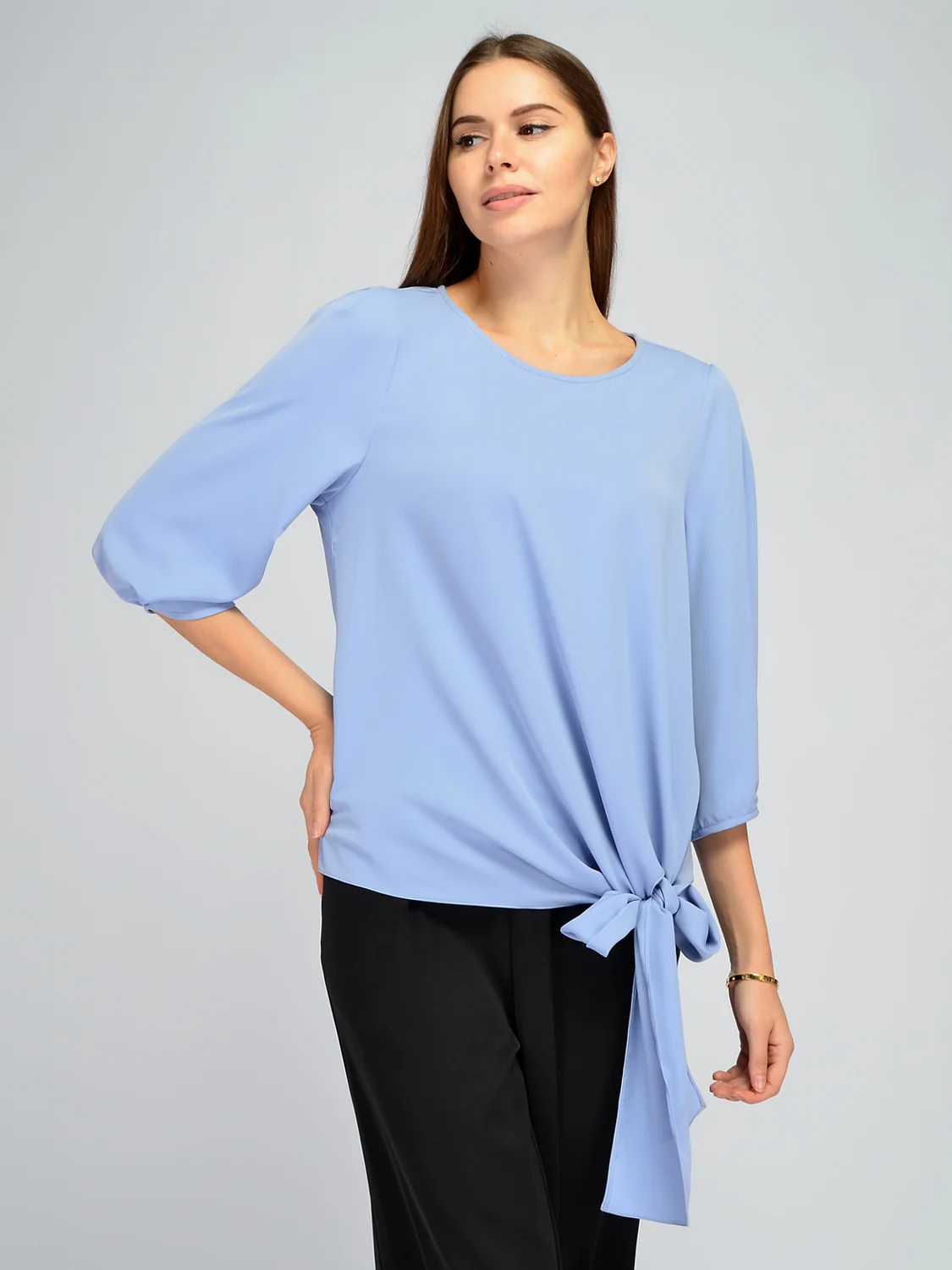 Свободная блузка с бантом легко впишется в повседневные и праздничные образы. Округлая горловина не давит на шею. Свободные рукава не сковывают движений и скрывают небольшие недостатки. На рукавах у плеча и у манжета располагаются декоративные складки, добавляя интересных акцентов лаконичному крою. Блуза выполнена из приятной струящейся ткани, придавая образу воздушности и женственности. Главное отличительной чертой блузки является бант, который завязывается на бедре. Базовая блузка сочетается как с брюками, так и с юбками. Вы можете надеть кофточку в офис, на торжественные мероприятия или в театр. Универсальная модель оверсайз скроет нюансы в области живота. Создайте классический образ, подобрав обувь на высоком ходу и лаконичные украшения. Стильная повседневная блузка подойдет взрослым женщинам и молодым девушкам, которые стремятся выглядеть элегантно при любых обстоятельствах. Блузка прямого кроя выпускается в широком размерном ряду, поэтому Вы легко сможете подобрать нужный размер.