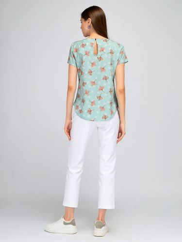Лаконичный дизайн блузки с коротким рукавом разбавлен яркими принтом. Для завершения подходящего образа подбирайте однотонный низ, любимые украшения и аксессуары. Прямая блузка позволяет не привязываться к определенному стилю. Выбирайте комплекты, подходящие вашему стилю и настроению.
