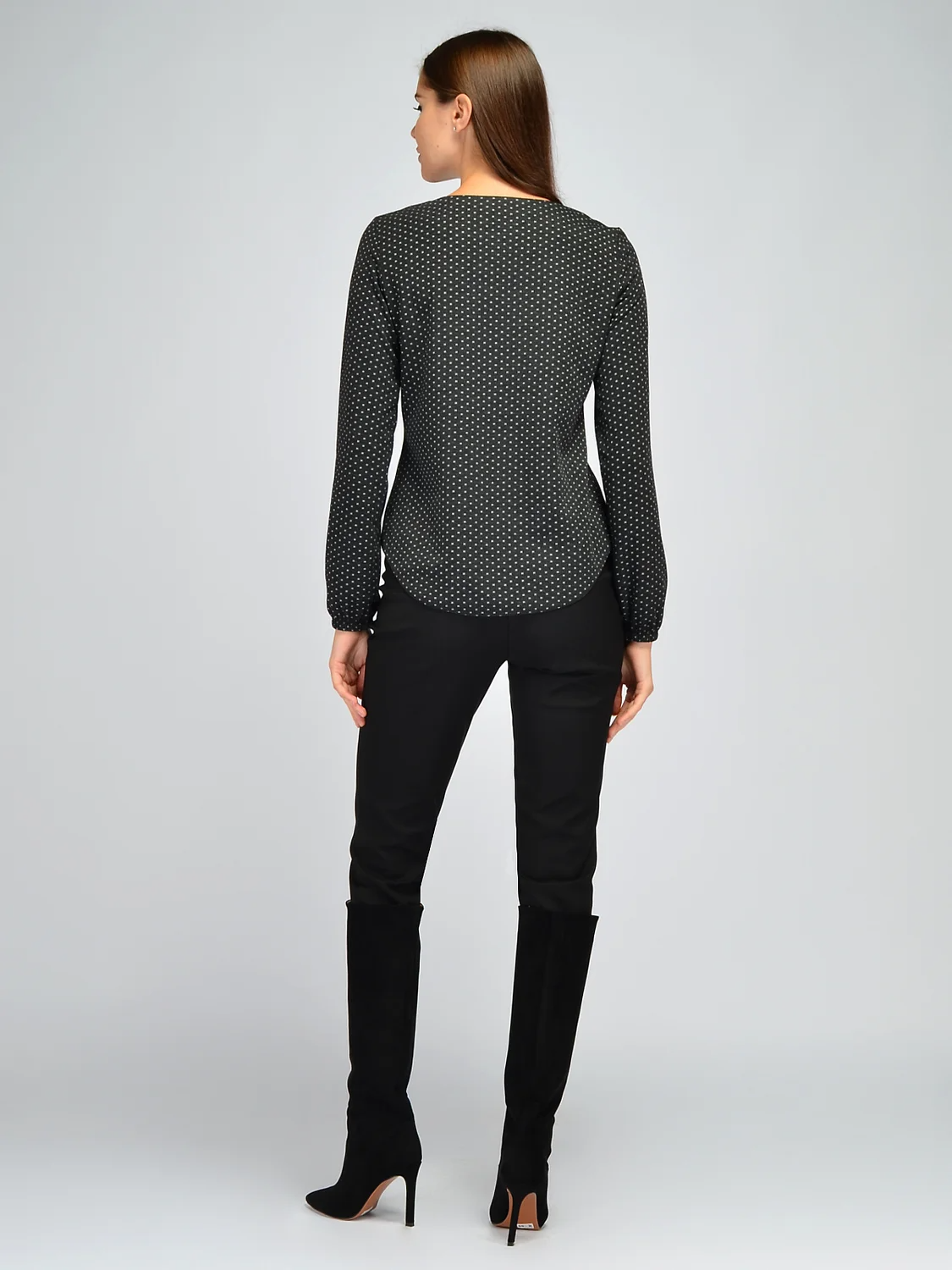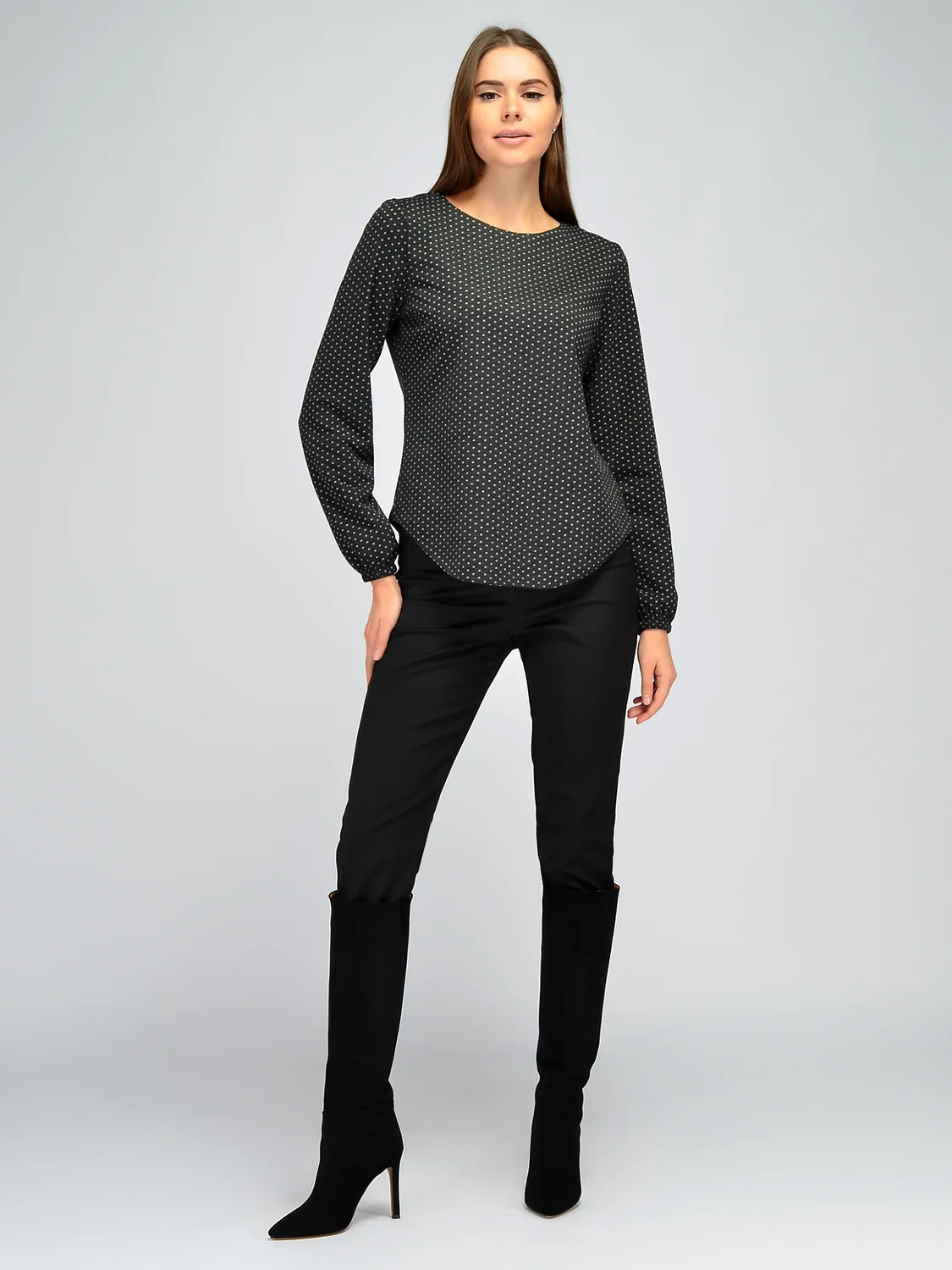 Трикотажная блузка приталенного кроя станет важной частью гардероба каждой модницы. Изящный округлый вырез горловины подчеркивает ключицу и не давит на шею. Свободные длинные рукава имеют манжеты на резинке, добавляя воздушности, женственности и удобства. Округлый низ изделия дополнен аккуратными фигурными вырезами по бокам, что позволяет красиво заправить блузку за пояс. Базовая блузка лаконично впишется в образы для работы, учебы, праздников или на каждый день. Кофточка выполнена из приятного мягкого трикотажа, который обеспечит уют на протяжении всего дня и сохранит свой первоначальный вид после многих стирок. Универсальность изделия позволяет сочетать его как с классическим низом и обувью, так и с повседневным. Свободный крой не облегает и поможет скорректировать нюансы фигуры. Теплая блузка придется по вкусу как взрослым женщинам, так и молодым девушкам. Создавайте строгие или нарядные образы, закончив образ подходящими украшениями и аксессуарами.