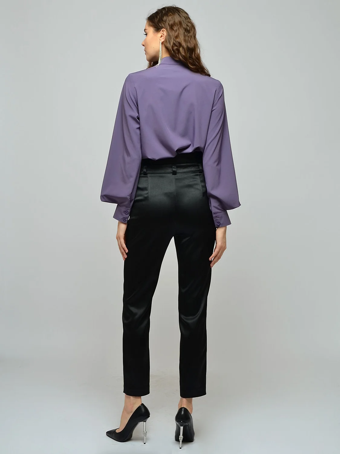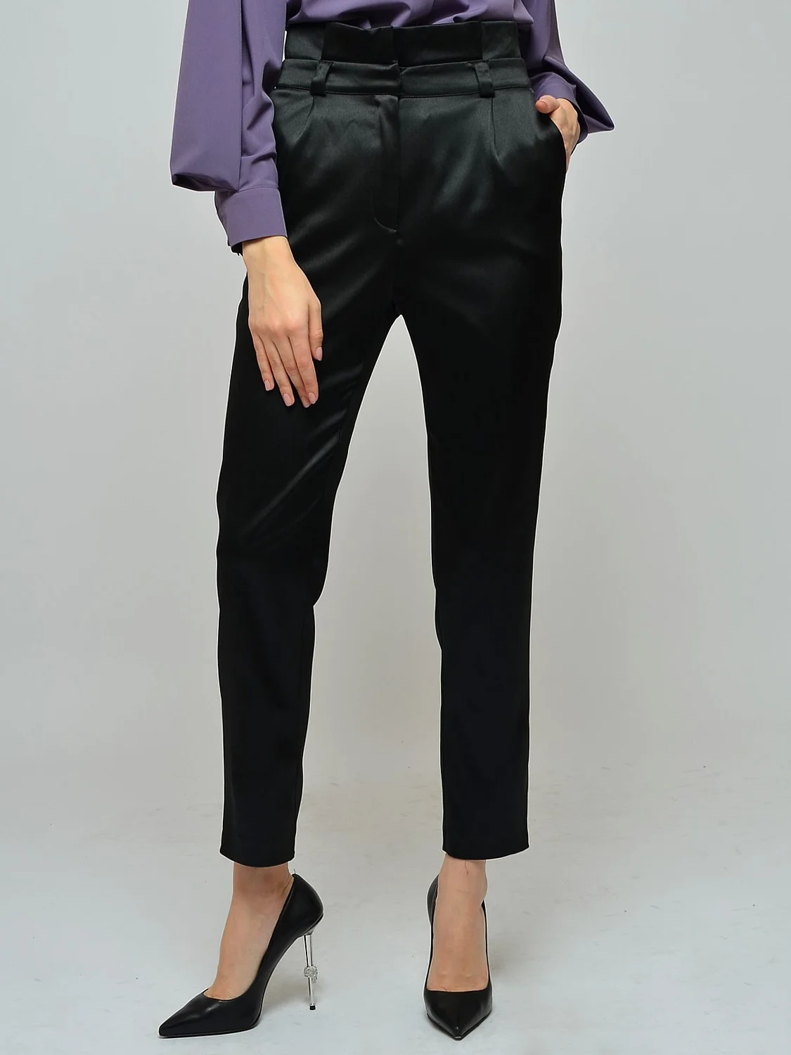 Брюки женские зауженные к низу. Пояс со складками и шлевками. В боковых швах втачные карманы.