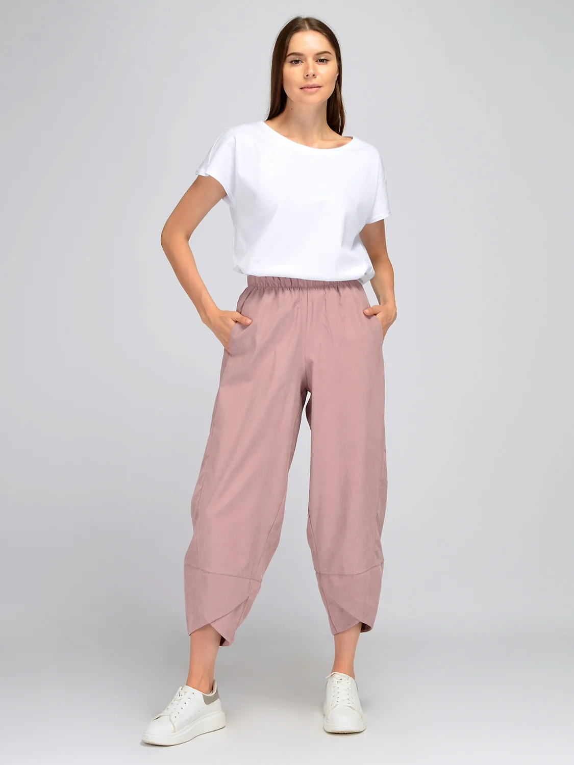 Летние брюки на резинке. Если Вы ищете комфортные свободные брюки с интересными деталями на лето, обратите внимание на данную модель. Пояс брюк выполнен из резинки, позволяя регулировать посадку. Широкие летние брюки дополнены удобными карманами в шве. Но главной особенностью модели является оригинальное исполнение манжетов, добавляя образу оригинальности, что, несомненно, будет притягивать взгляды. Без застежки. Декоративный элемент манжеты. Крой широкий. Карманы в шве. Рекомендована стирка при температуре 30С. Широкие брюки на резинке обеспечат Вам максимум комфорта и свободы движений в жаркий сезон. Брюки идеально подходят для повседневного стиля. Дополните горской образ топом или футболкой (носите навыпуск изи заправленным за пояс), удобной обувью на низком ходу, рюкзаком или сумкой-шоппером. Стильный и удобный образ в стиле кэжуал Вам обеспечен.