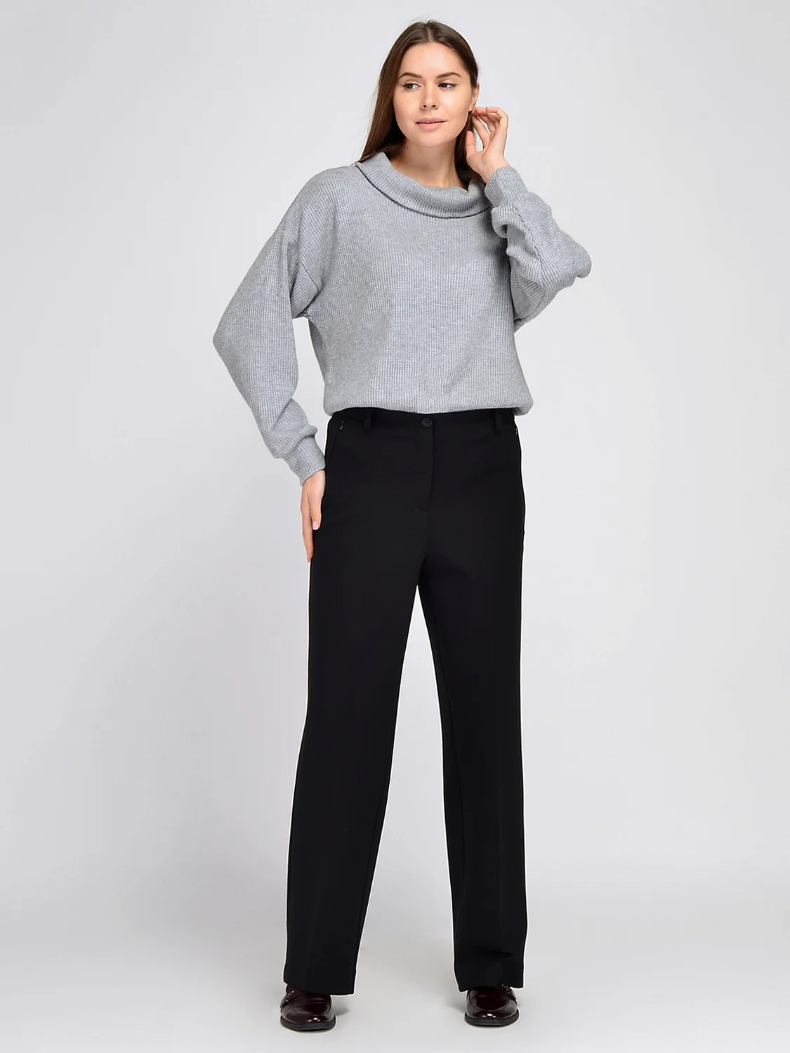 Прямые женские классические брюки идеально сядут на любую фигуру и дополнят строгий образ или образ в стиле кэжуал. Боковые карманы брюк застегиваются на молнию, а на поясе предусмотрены шлевки, поэтому не забудьте про подходящий ремень.
