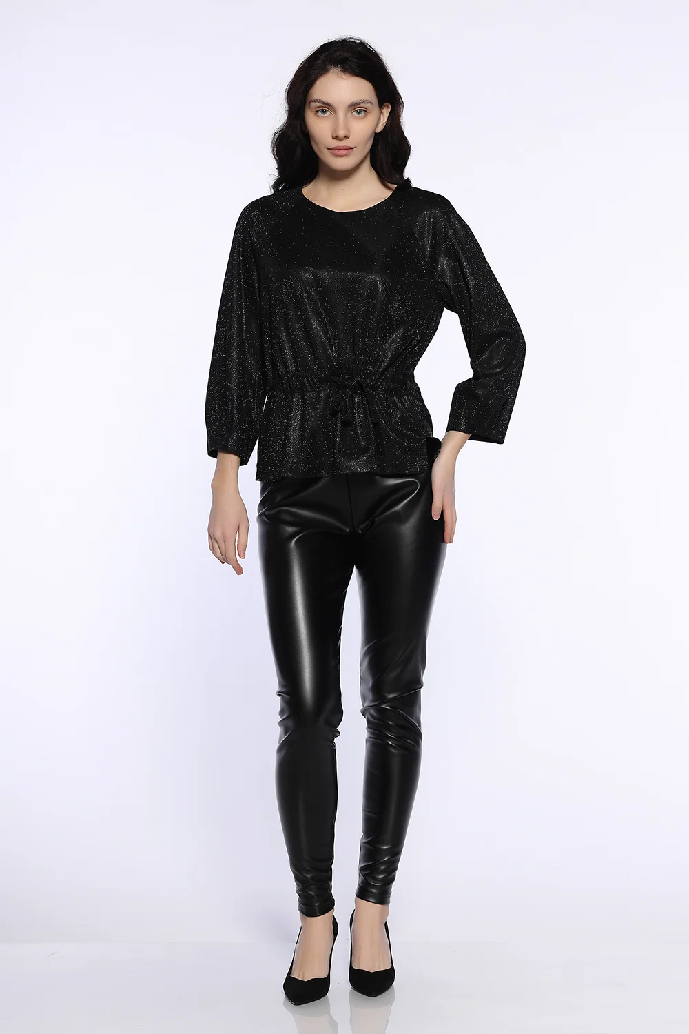 Кожаные женские легинсы являются трендовым элементом образа современной девушки. У кожаных легинсов средняя посадка на талии, в поясе резинка. Облегающий крой легинсов подчеркнет достоинства Вашей фигуры и создаст эффектный яркий стиль. Черные обтягивающие легинсы выполнены из приятной наощупь матовой экокожи. Для того, чтобы стильные осенние образы стали еще и практичными, на легинсах предусмотрена теплая подкладка. Если Вам захочется создать эффектный образ, притягивающий все взгляды, дополните легинсы ярким верхом, броскими украшениями и массивной обувью. Если Вы предпочитаете более сдержанный стиль, уравновесьте кожу теплым уютным джемпером, свитером или водолазкой. Обувь выбирайте боле консервативную и удобную. В нынешнем сезоне в моде образы, состоящие полностью из кожаных элементов. В таком случае наденьте кожаную рубашку или куртку, кожаную обувь. Вы можете экспериментировать и составлять образы, исходя из повода и Вашего настроения. Кожаные легинсы станут универсальным дополнением Вашего гардероба. Легинсы выпускаются в широком размерном ряду, есть большие размеры.