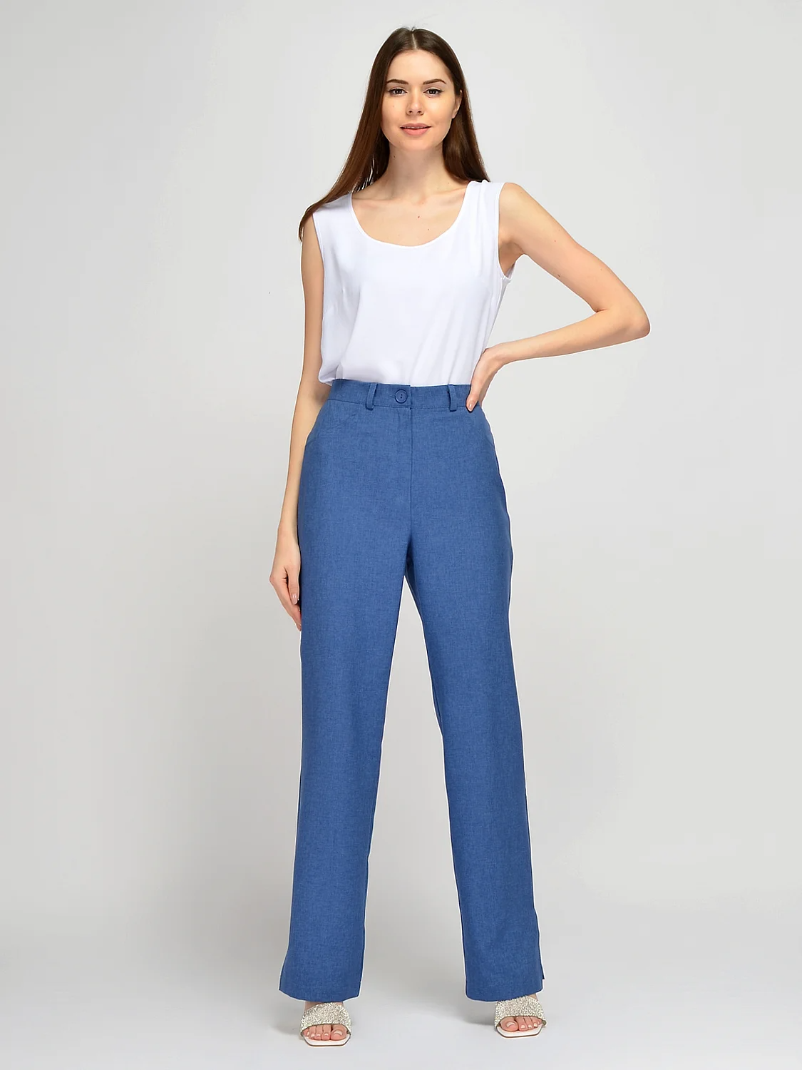 Летние брюки полной длины станут базовым элементом Вашего гардероба в жаркую погоду и в демисезон. У длинных брюк высокая посадка на талии. А для того, чтобы штаны идеально сели по фигуре, сзади предусмотрена резинка, которая позволит регулировать плотность посадки. Прямые свободные брюки выполнены из приятной плотной ткани с вискозой в составе, благодаря чему Вы будете чувствовать себя максимально комфортно в жаркий летний день. Внизу на брючинах находятся стильные разрезы, что является трендом грядущего сезона. Завышенные классические брюки дополнят строгие, нарядные и повседневные образы. Однотонная модель подойдут для офиса, работы, учебы, прогулки или торжества. Сочетайте широкие летние брюки с топом, футболкой, блузкой, жакетом. Независимо от повода, не забудьте завершить стильный образ тонким ремешком, ведь на брюках вшиты шлевки. Классическая модель брюк с разрезами понравится как взрослым женщинам, так и молодым девушкам и подросткам. Стильные высокие брюки подчеркнут Вашу индивидуальность.