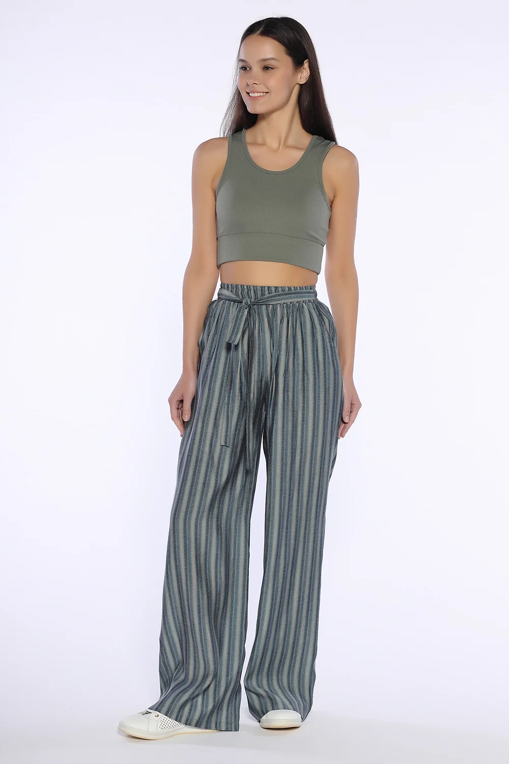Летние брюки из вискозы подарят комфорт и свободу в жаркий сезон. Длинные свободные брюки идеально сядут по фигуре за счет удобной резинки в поясе. На поясе находится длинный пояс в цвет брюк. Брюки палаццо дополнены практичными карманами в шве. Вы можете надеть широкие брюки на работу, на прогулку или торжественное мероприятие. Благодаря качественному легкому материалу Вам не будет жарко в течение всего дня. Свободный крой скроет возможные недостатки фигуры и придаст легкости Вашей походке. Легкие летние брюки станут Вашим универсальным элементом гардероба на лето. Брюки из вискозы прекрасно сочетаются с комплектной блузкой оверсайз, топами, футболками. В качестве обуви можете выбирать туфли, кеды, босоножки или сандалии. Повседневные брюки трубы придутся по вкусу как взрослым женщинам, так и молодым девушкам. Широкий размерный ряд позволит Вам чувствовать себя свободно в выборе нужного размера. Стильные брюки в пол станут Вашим любимым дополнением летних образов! Надевайте трендовые брюки палаццо в офис, на свидание или для прогулки на каждый день.