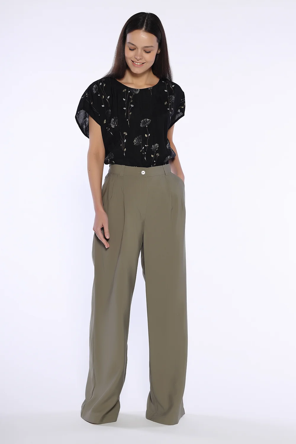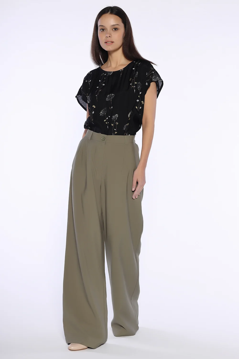 Летние брюки палаццо станут стильной новинкой в Вашем гардеробе. Классические длинные брюки с карманами дополнят свежие образы для офиса, праздников или на каждый день. Спереди от карманов идут декоративные складки, придавая оригинальности всему образу. Свободные брюки с высокой посадкой дополнены резинкой сзади в поясе, поэтому брюки идеально сядут на любую фигуру. Высокие брюки палаццо выполнены из качественной ткани с большим процентом хлопка в составе, благодаря чему Вы будете чувствовать себя максимально комфортно на протяжении всего дня даже в знойную пору. Длинные свободные брюки отлично подойдут высоким девушкам, но и прекрасно сядут на невысоких дам, визуально вытягивая силуэт. Классические брюки из хлопка элегантно струятся при ходьбе, делая походку воздушной и изящной. Широкие летние брюки сочетаются как со строгим верхом, например, блузками и рубашками, так и с более спортивным, например, футболками и топами. Обувь может быть как на высоком ходу, так и на низком. Струящиеся брюки дополнят деловые, праздничные или повседневные образы летом и весной. Привлекайте к себе внимание окружающих и ловите восхищенные взгляды в стильной новинке!