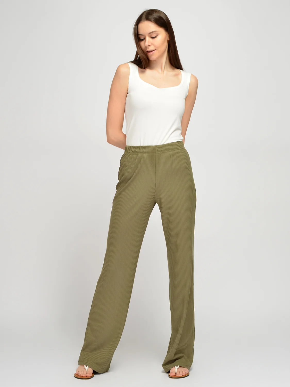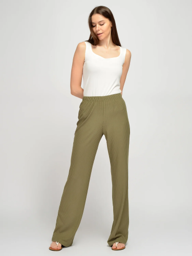 Длинные трикотажные брюки прямого кроя это то, без чего нельзя представить себе летний гардероб. Пояс на резинке обеспечит комфортную посадку на талии. Брюки лапша с высокой посадкой визуально вытягивают силуэт и придают ему женственности и легкости. Благодаря приятной струящейся ткани Ваша походка будет притягивать взгляды и демонстрировать Вашу грацию и уверенность в себе. Стильные брюки без карманов и застежки подойдут взрослым женщинам, молодым девушкам и даже подросткам. Широкий фасон брюк не облегает ноги и поможет скрыть возможные недостатки фигуры. Базовые брюки полной длины впишутся в любой гардероб. Вы можете носить их на работу, на прогулку и даже на праздничные события. Свободные брюки идеально сочетаются с комплектной футболкой в тон из нашей коллекции. Вы можете носить брюки как с обувью на каблуке, так и с более повседневными вариантами, например, босоножками, кедами или сандалиями.