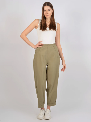 Хлопковые брюки обязательно должны быть в гардеробе любой девушки летом. Высокая талия создаст гармоничные пропорции фигуры и добавит несколько дополнительных сантиметров росту. Удобный пояс на резинке не давит на живот и позволяет регулировать плотность посадки. Спереди на брюках располагаются удобные карманы. Снизу у штанов декоративные защипы. Благодаря натуральной хлопковой ткани Вы будете чувствовать себя комфортно даже в жаркий день. Материал у брюк достаточно плотный, а это значит, модель поможет скрыть небольшие недостатки в области бедер. Свободные брюки мом немного заужаются книзу и имеют длину 7/8. Укороченные модели сохранят свою актуальность к летнем сезоне. Базовые брюки бананы идеально впишутся в повседневные образы. Дополните их топом, футболкой или укороченным жакетом. Обувь выбирайте на плоском ходу, например, кеды или эспадрильи. Чтобы чувствовать себя комфортно на пикнике или в отпуске, создавайте образы из натуральных материалов. Практичные укороченные брюки без застежки станут универсальным летним вариантом!