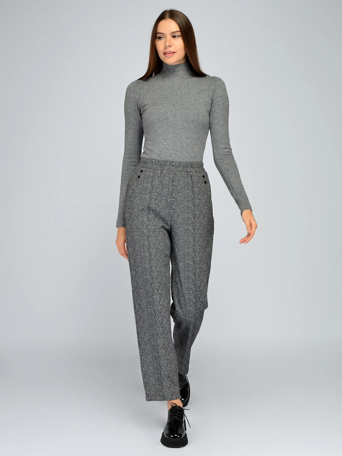 Классические брюки со стрелками являются неотъемлемым элементом строгих, повседневных и праздничных образов. Длинные прямые брюки выполнены из приятной плотной ткани, за которой легко ухаживать и которая сохранит опрятный вид на протяжении всего дня. Благодаря резинке в поясе брюки прекрасно сядут на любой тип фигуры, создавая стройные пропорции и акцентируя внимание на талии. Базовая модель брюк оснащена боковыми карманами, которые декорированы пуговицами, придающими индивидуальности Вашим образам. Классические стрелки на брюках визуально вытягивают силуэт. Универсальная расцветка брюк позволяет сочетать их с любым цветом. Для повседневных образов подберите водолазку или свитер, который лучше заправить за пояс. Для нарядных и деловых образов выбирайте эффектные блузки, рубашки или топы из легкой ткани. Прямые брюки полной длины сочетаются с обувью как на высоком, так и на низком ходу. Порадуйте себя универсальной новинкой, которая будет радовать Вас каждый день!