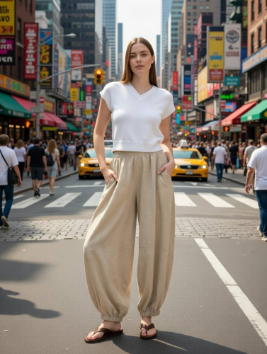 Свободные летние брюки станут Вашими любимцами в жаркий сезон. Талия и манжеты на резинке обеспечат правильную посадку по фигуре и сохранят объемную форму брюк алладинов. Высокая посадка визуально вытягивает силуэт, делая Вас выше. Просторные брюки бананы не облегают бедра и ноги, скрывают возможные недостатки фигуры. Длинные летние брюки имеют карманы по бокам и сзади, обеспечивая комфорт современной девушке. Модель широких брюк имеет оригинальные асимметричные строчки, делая модель уникальной и притягательной. Легкие брюки выполнены из приятной натуральной ткани с большим процентом вискозы в составе, благодаря чему вы будете чувствовать себя комфортно и свободно на протяжении всего дня. Идеальные летние брюки алладины дополнят стильные повседневные образы. Завершите образ топом или футболкой и наденьте удобную обувь на низком ходу. Объемные брюки шаровары станут отличным дополнением гардероба для отпуска и отдыха на море.