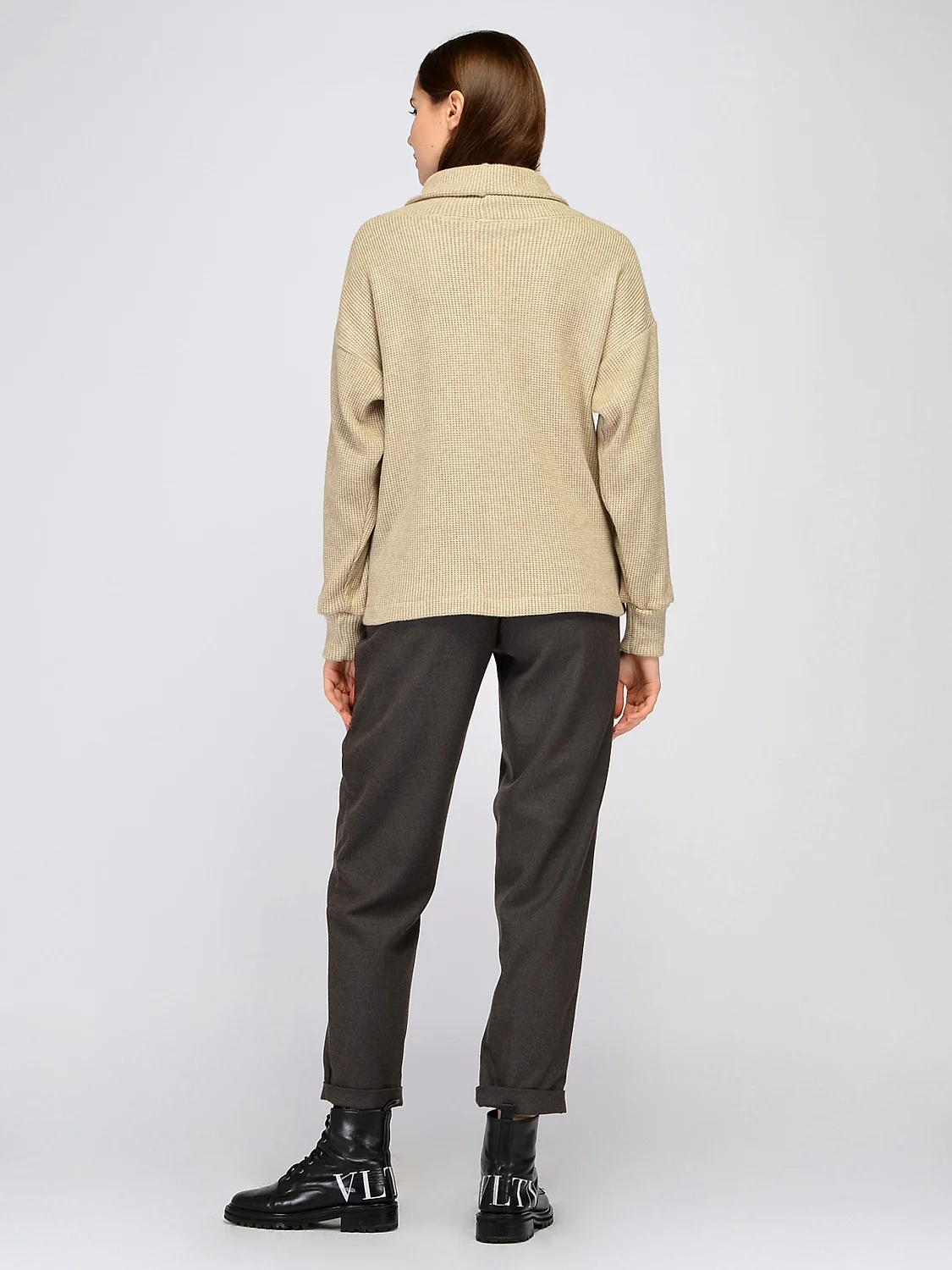 Джемпер с воротником хомутом. Невозможно представить осеннюю и зимнюю пору без уютного и комфортного свитера силуэта оверсайз с крупным воротником. Идеальный силуэт джемпера гармонично дополнит и офисный, и городской образы. Вам не захочется снимать эту вещь, поскольку она выполнена из приятного к телу материала и выглядит идеально. Вырез горловины круглый. Воротник хомут. Рукава длинные. Рукава втачные. Без застежки. Крой прямой. Рекомендована стирка при температуре не более 30С. Свободный джемпер с длинными рукавами носите навыпуск или заправляйте за пояс. Универсальный фасон одинаково удачно сочетается как с классическими вещами, так и с повседневными. Для придания образу торжественности наденьте на шею крупное украшение. Обувь выбирайте исходя из собственных предпочтений и мероприятия.