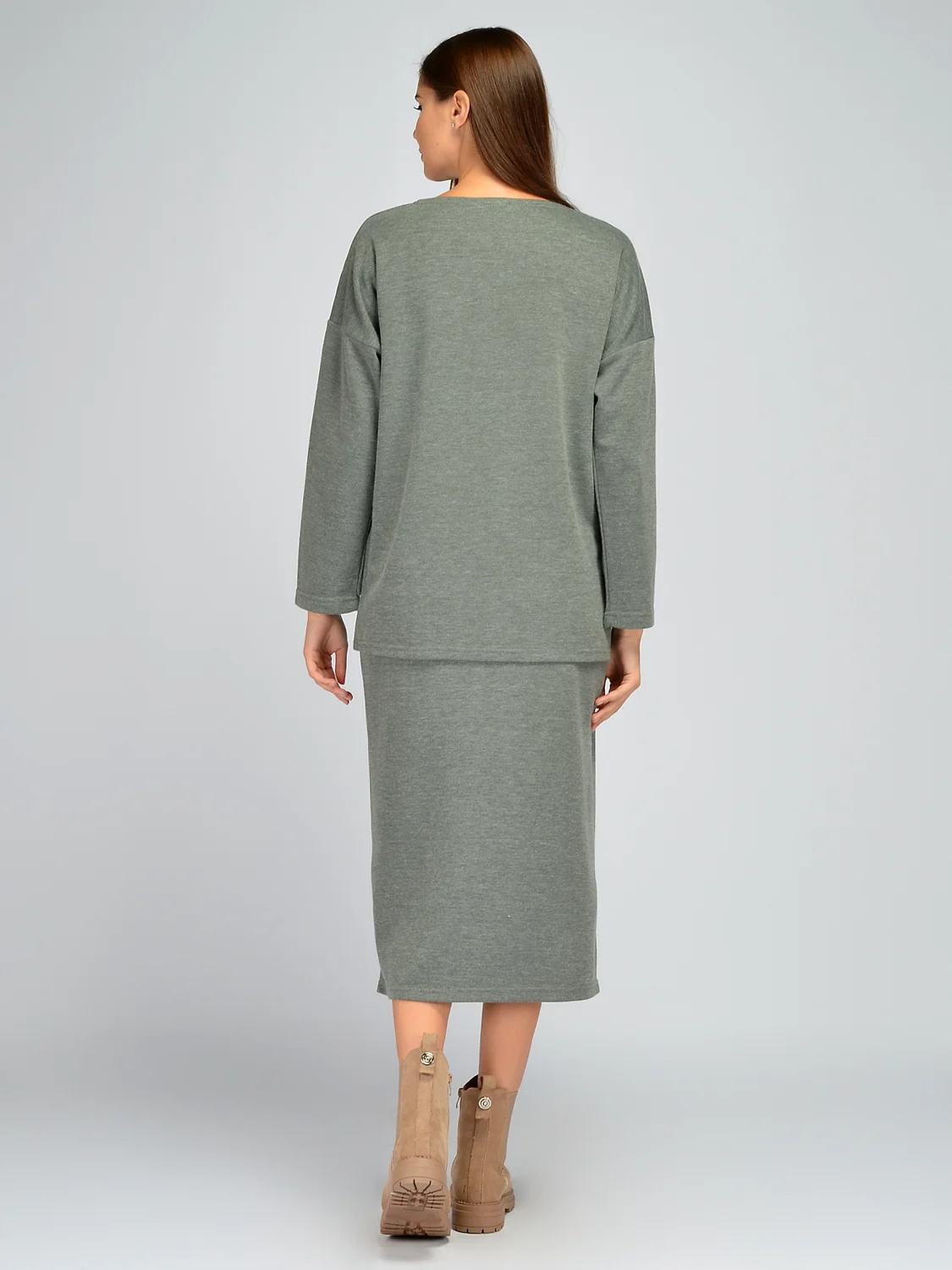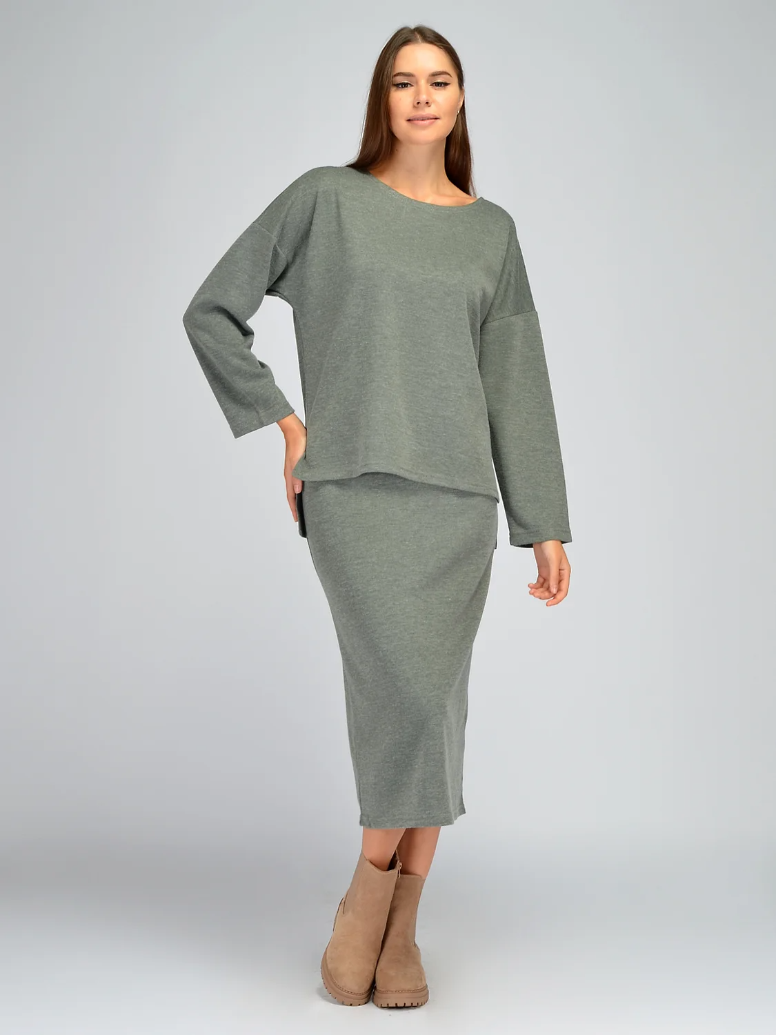 Теплый джемпер прямого кроя станет неотъемлемой частью Вашего гардероба в прохладный сезон. Округлый вырез горловины лодочка изящно приоткрывает ключицу и позволяет удачно обыграть образ шейным украшением. Кофточка имеет спущенную линию плеча, что соответствует крою оверсайз. Рукава свободные, без резинок на манжетах. У свободного джемпера асимметричный низ с разрезами по бокам, спереди изделие немного короче, чем сзади. Вы можете носить базовую вещь как навыпуск, так и заправлять за пояс, целиком или только спереди. Универсальная одежда впишется в разные по стилю образы, будь то офисный, повседневный или нарядный. Изделие идеально гармонирует с комплектными брюками палаццо и юбкой карандаш, которые выполнены из идентичной ткани и расцветки. Удлиненный джемпер свободного кроя придется по вкусу молодым девушкам и взрослым женщинам разного роста и комплекции. Создайте уютные образы с мягким джемпером, который выполнен из качественной, приятной наощупь ткани, которая сохранит свой вид после многих стирок.