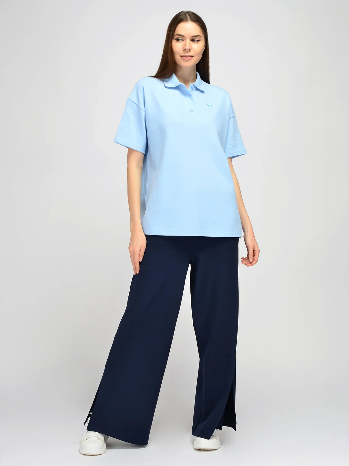 Классическая футболка поло теперь в фасоне оверсайз. Свободный крой и качественная хлопковая ткань пике обеспечат Вам комфорт в течение всего дня. Вы можете быть уверены, что рубашка поло прослужит Вам долгие годы, сохраняя свой цвет и форму. Футболка имеет классический отложной воротник, застегивается на 4 пуговицы. Спереди на полочке вышит фирменный логотип в тон изделия. Современный фасон предусматривает спущенную линию плеча. Широкая футболка оверсайз скроет возможные недостатки фигуры. Вы можете носить рубашку поло навыпуск или заправлять ее за пояс, подчеркивая талию. Футболка-поло оверсайз сочетается со спортивными брюками, юбками, джинсами, шортами. Создайте стильный образ на лето для прогулок, активного отдыха или для дома. Футболка оверсайз придется по вкусу подросткам, девушкам и женщинам, которые выбирают практичность и комфорт. Футболка поло свободного кроя станет идеальным дополнением летнего гардероба и впишется во многие повседневные образы.
