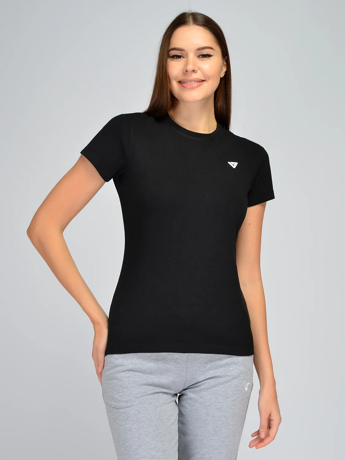 Спортивная футболка с коротким рукавом является незаменимым элементом в каждом гардеробе. В приталенной футболке с коротким рукавом и классическим округлым вырезом Вам будет комфортно в любую погоду, в любом образе. Футболка выполнена из ткани наивысшего качества, что позволит ей не терять свой внешний вид долгое время. В составе футболки хлопок 95%. Благодаря плотной ткани футболка не просвечивает и не подчеркивает особенности фигуры. Практичная длина не сковывает движений и позволяет заправлять футболку за пояс при желании. Хлопковая футболка позволяет коже дышать, поэтому Вы будете чувствовать себя комфортно в течение всего дня. Футболка приталенного кроя создана для тех, кому близок активный образ жизни. Футболка с коротким рукавом поможет создать стильный спортивный или современный кэжуал образ. Футболка представлена в разных сочных цветах и идеально гармонирует со спортивными брюками, юбками и бриджами из коллекции. Вы можете носить изделие как самостоятельный элемент одежды летом, или надевать ее под свитер, кардиган или пиджак в прохладный сезон. Базовая футболка придется по вкусу девушкам и женщинам разных возрастов и типов фигур.