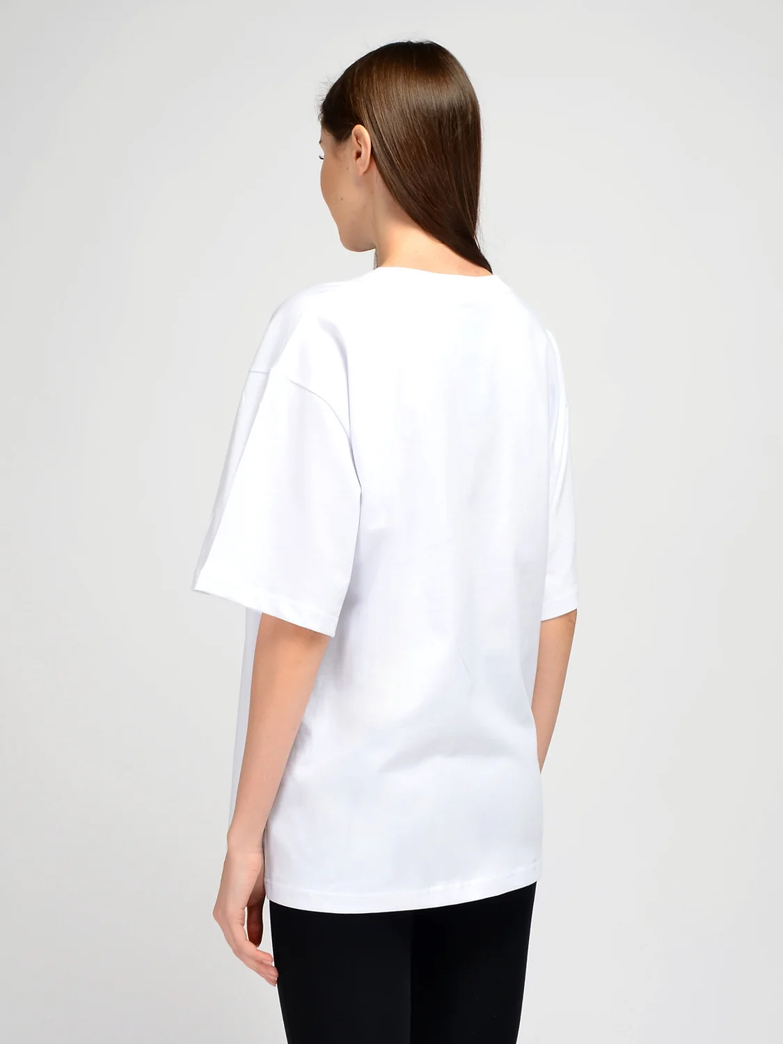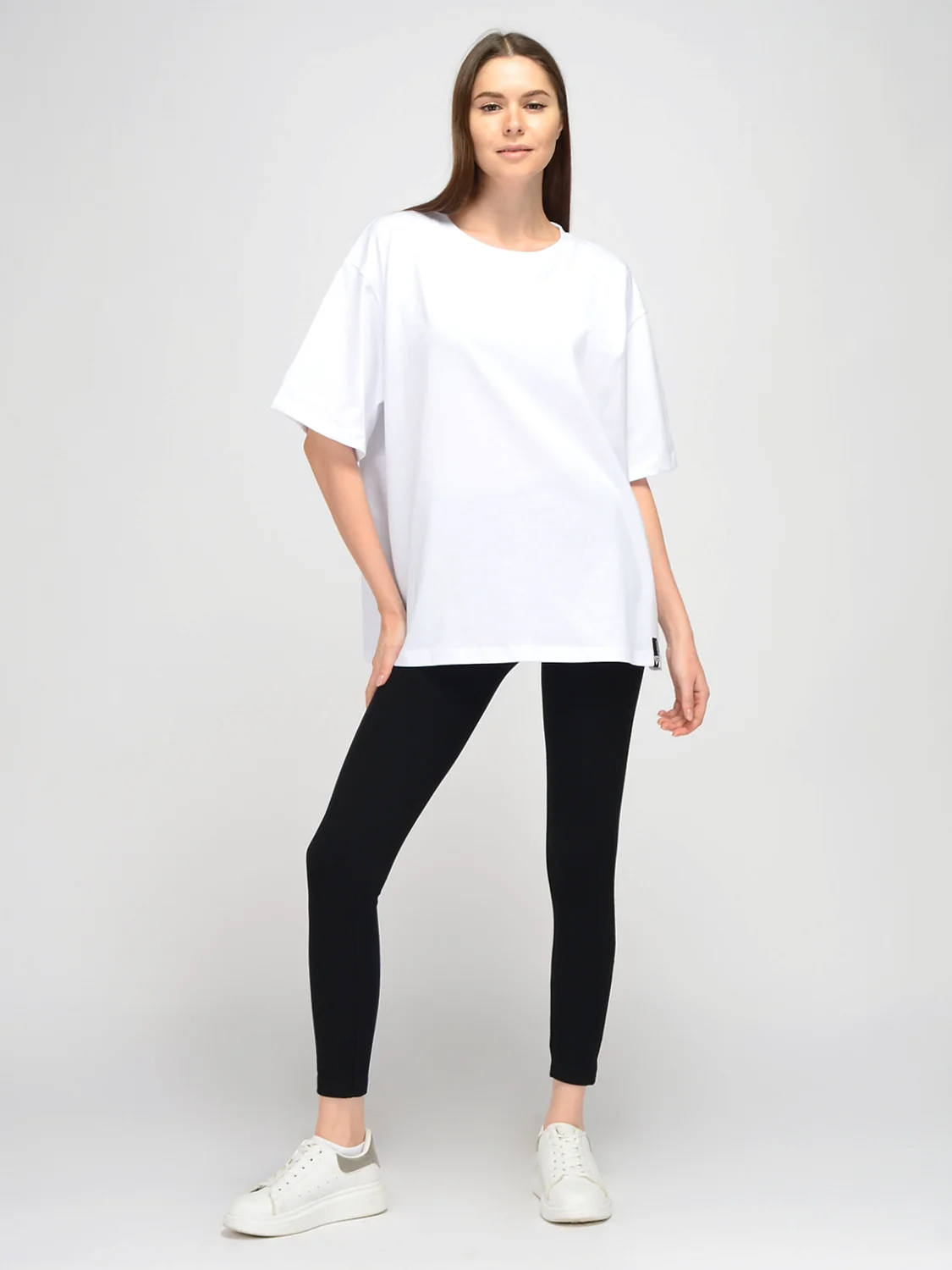 Базовая футболка оверсайз обеспечит Вам стильный и современный образ. Спортивная футболка прямого кроя удачно впишется в повседневный гардероб жарким летом или станет частью комплекта для активного отдыха или занятий спортом. Комфортный круглый вырез горловины не давит на шею. Удобные широкие рукава оставляют свободу движениям. Однотонная футболка свободного кроя имеет небольшой декоративный элемент: жаккардовый флажок на нижней части футболки с фирменным логотипом. Интересная деталь придает образу индивидуальности. Практичная футболка oversize выполнена из качественной хлопковой ткани, а это значит, что Вы будете носить ее с удовольствием не один сезон. Хлопковая базовая футболка будет уместна не только на прогулках или в поездках и путешествиях, но и может составить уютный домашний комплект. Широкий крой маскирует небольшие недостатки фигуры. Длина позволяет носить футболку как навыпуск, так и заправленной за пояс. Классическая модель сочетается со спортивными юбками, брюками, бриджами, леггинсами, а также с джинсами. Обувь выбирайте спортивную, на плоском ходу. Если дополнить образ крупными украшениями, получится стильный городской образ в стиле спортивный шик.