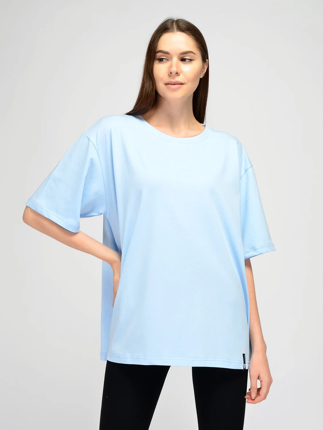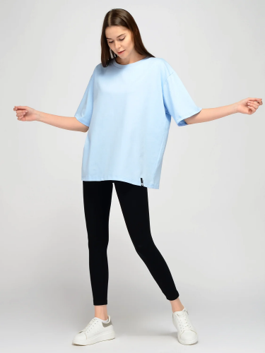 Базовая футболка оверсайз обеспечит Вам стильный и современный образ. Спортивная футболка прямого кроя удачно впишется в повседневный гардероб жарким летом или станет частью комплекта для активного отдыха или занятий спортом. Комфортный круглый вырез горловины не давит на шею. Удобные широкие рукава оставляют свободу движениям. Однотонная футболка свободного кроя имеет небольшой декоративный элемент: жаккардовый флажок на нижней части футболки с фирменным логотипом. Интересная деталь придает образу индивидуальности. Практичная футболка oversize выполнена из качественной хлопковой ткани, а это значит, что Вы будете носить ее с удовольствием не один сезон. Хлопковая базовая футболка будет уместна не только на прогулках или в поездках и путешествиях, но и может составить уютный домашний комплект. Широкий крой маскирует небольшие недостатки фигуры. Длина позволяет носить футболку как навыпуск, так и заправленной за пояс. Классическая модель сочетается со спортивными юбками, брюками, бриджами, леггинсами, а также с джинсами. Обувь выбирайте спортивную, на плоском ходу. Если дополнить образ крупными украшениями, получится стильный городской образ в стиле спортивный шик.
