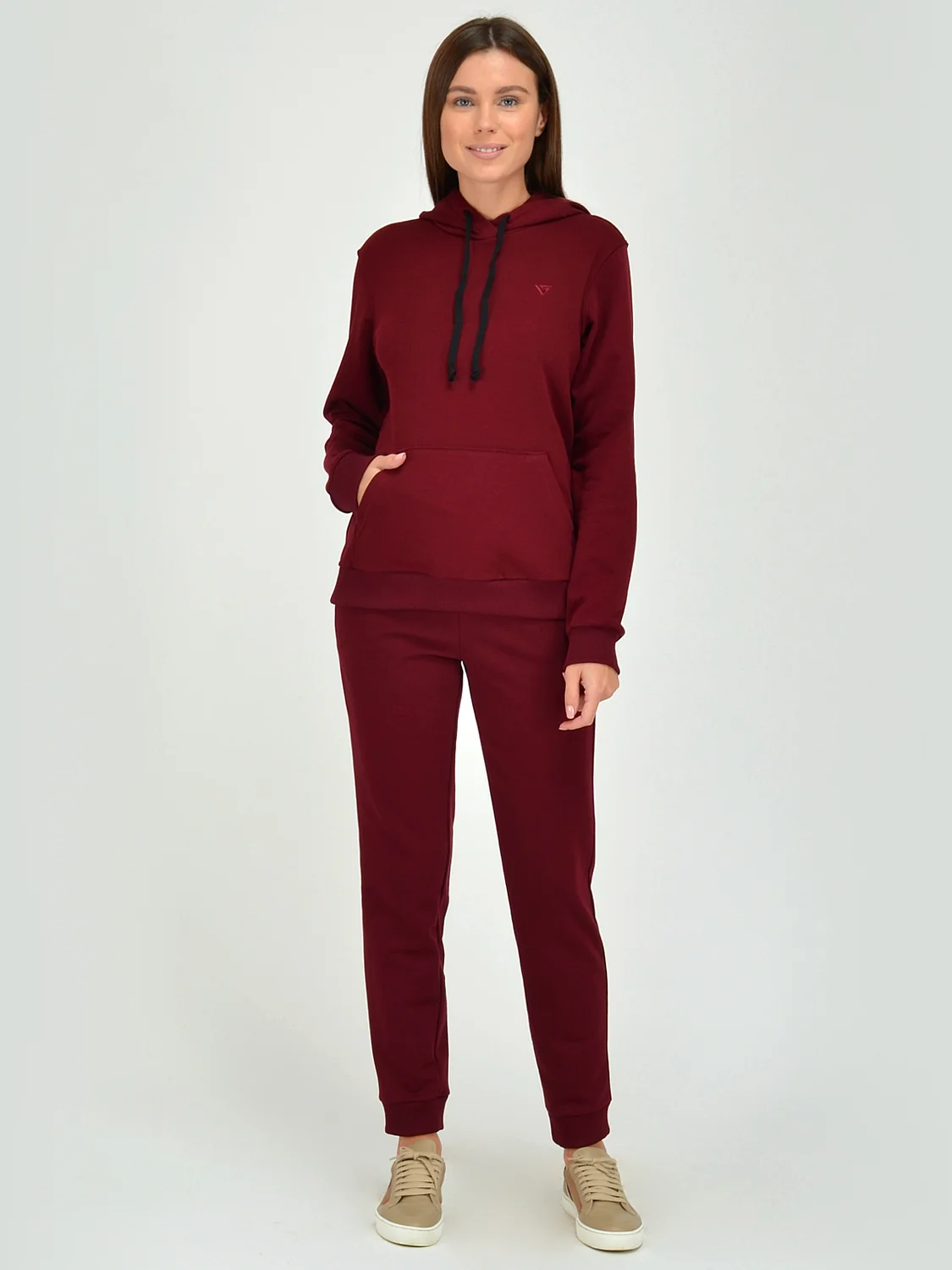 Толстовка с капюшоном. Низ и рукава на резинке. В капюшоне декоративный шнурок. Карманы накладные.