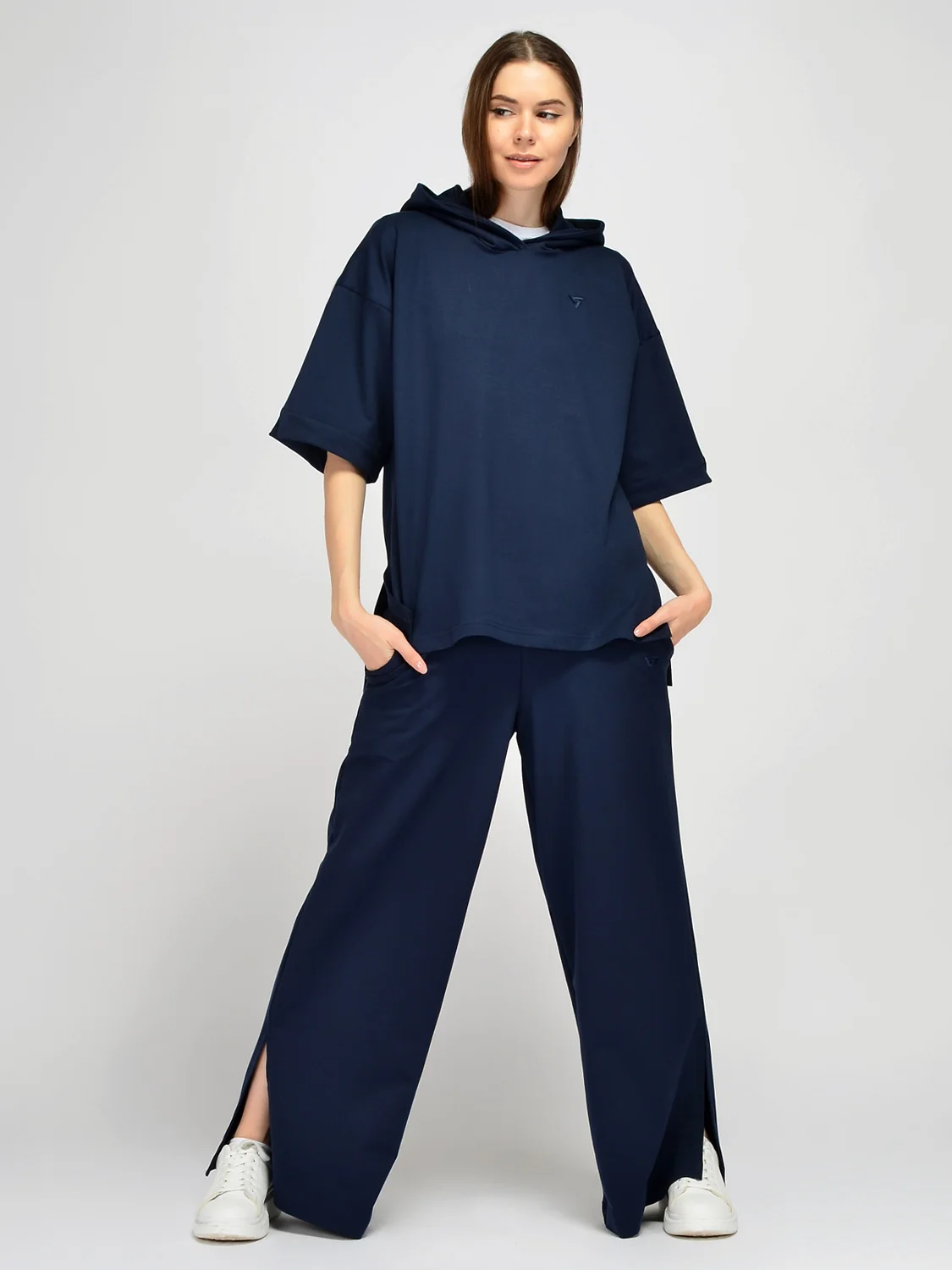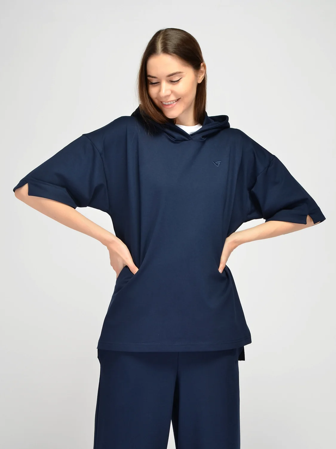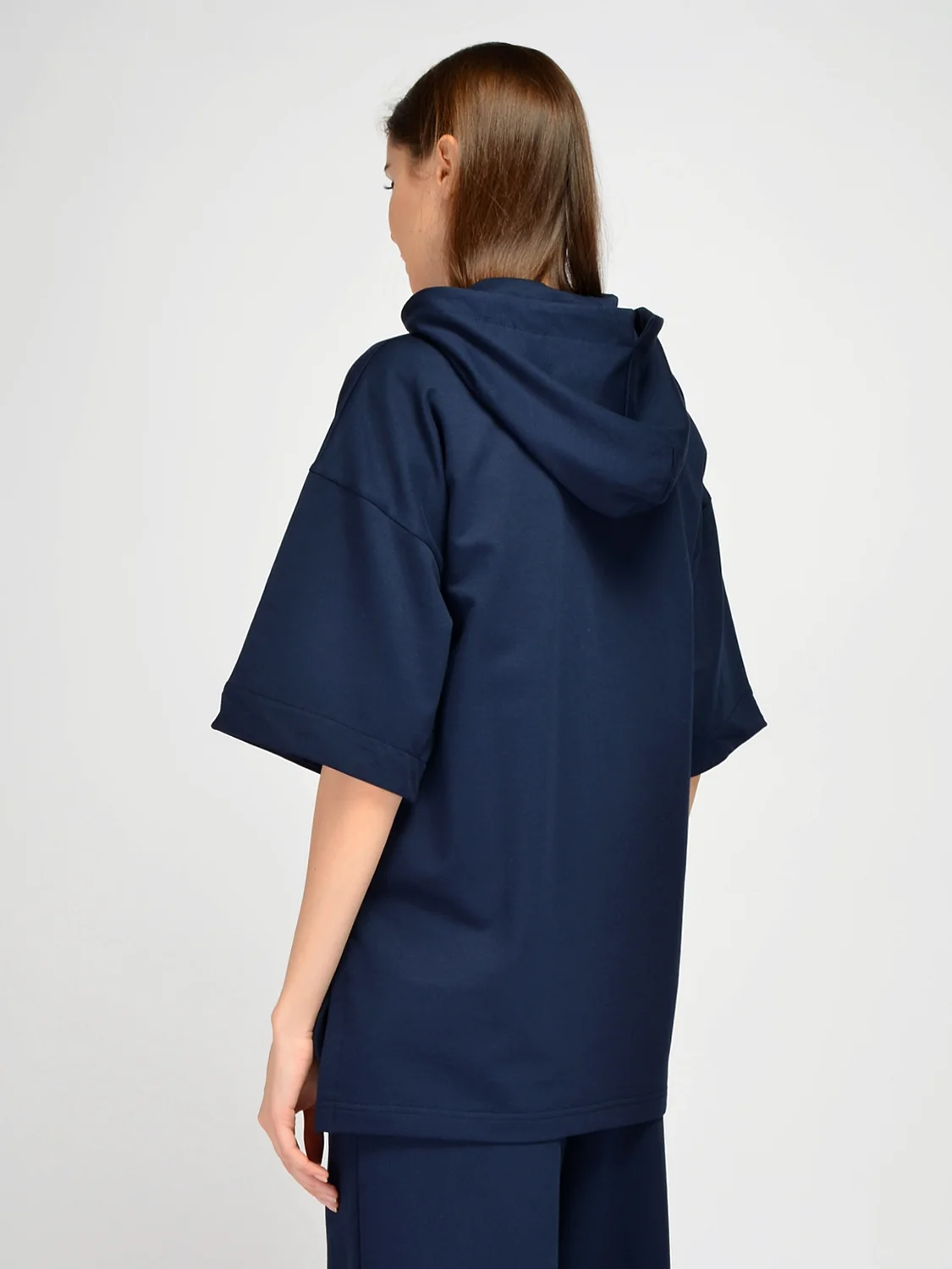 Спортивное худи оверсайз с капюшоном подчеркнет Ваш стиль. Весенняя толстовка с укороченными рукавами до локтя имеет свободный крой, не стесняя движений. На капюшоне и рукавах располагаются небольшие декоративные разрезы, придавая уникальности Вашему образу. По бокам на кофте также находятся разрезы. На полочке вышит фирменный логотип в тон изделия. Трикотажная кофта свободного кроя придется по вкусу всем, кто ведет активный образ жизни и предпочитает комфорт в повседневности. Вы можете надеть спортивное худи на прогулку, занятия спортом или носить дома. Весенняя кофта выполнена из качественной хлопковой ткани, а значит, Ваша кожа будет дышать даже в жаркий сезон. Дополните толстовку трикотажными спортивными брюками, юбкой, шортами или джинсами. Обувь выбирайте спортивную, на плоском ходу. Широкий крой скроет возможные недостатки фигуры и поможет создать стильный современный образ в стиле кэжуал. Худи оверсайз с капюшоном станет Вашей любимой моделью независимо от времени года.
