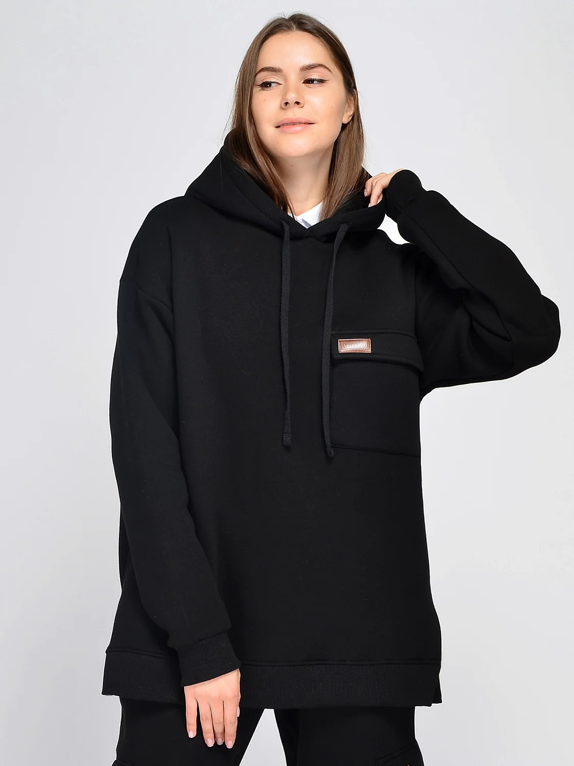 Теплое спортивное худи с капюшоном, накладным карманом с фирменным логотипом и разрезами по бокам составит стильный спортивный образ на прохладную погоду.