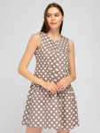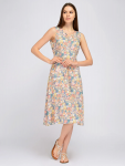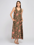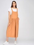 Платье женское без рукавов свободного силуэта.В низу по бокам вшиты воланы. Пряжки регулируют ширину лямок.