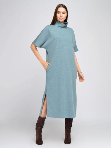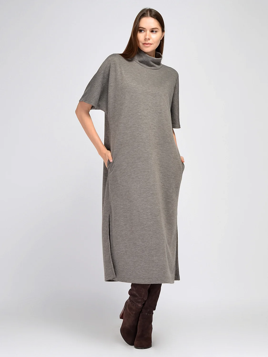 Платье миди с воротником стойкой и разрезами. Выбирайте смелые современные образы на осенне-зимний сезон. Платье макси с высоким воротом, короткими рукавами и боковыми разрезами гармонично дополнит Ваш гардероб. Приятная ткань платья подарит Вам ощущение комфорта и уюта. Для удобства в платье предусмотрены боковые кармины в шве. Вырез горловины круглый. Отделка горловины воротник стойка. Рукава короткие. Тип рукава цельнокроеный. Без застежки. Декоративный элемент разрез. Длина макси. Крой прямой. Без подкладки. Карманы в шве. Рекомендована стирка при температуре не более 30С.Используйте платье макси с коротким рукавом в повседневных и офисных образах. Для свежего городского образа наденьте под платье джемпер с длинным рукавом в тон из нашей коллекции, грубые ботинки на низком ходу и пальто. Завершите строгий образ, надев под платье блузку с длинным рукавом, плотные колготки и крупное украшение на шею. Обувь подбирайте классическую, на высоком или на низком ходу.