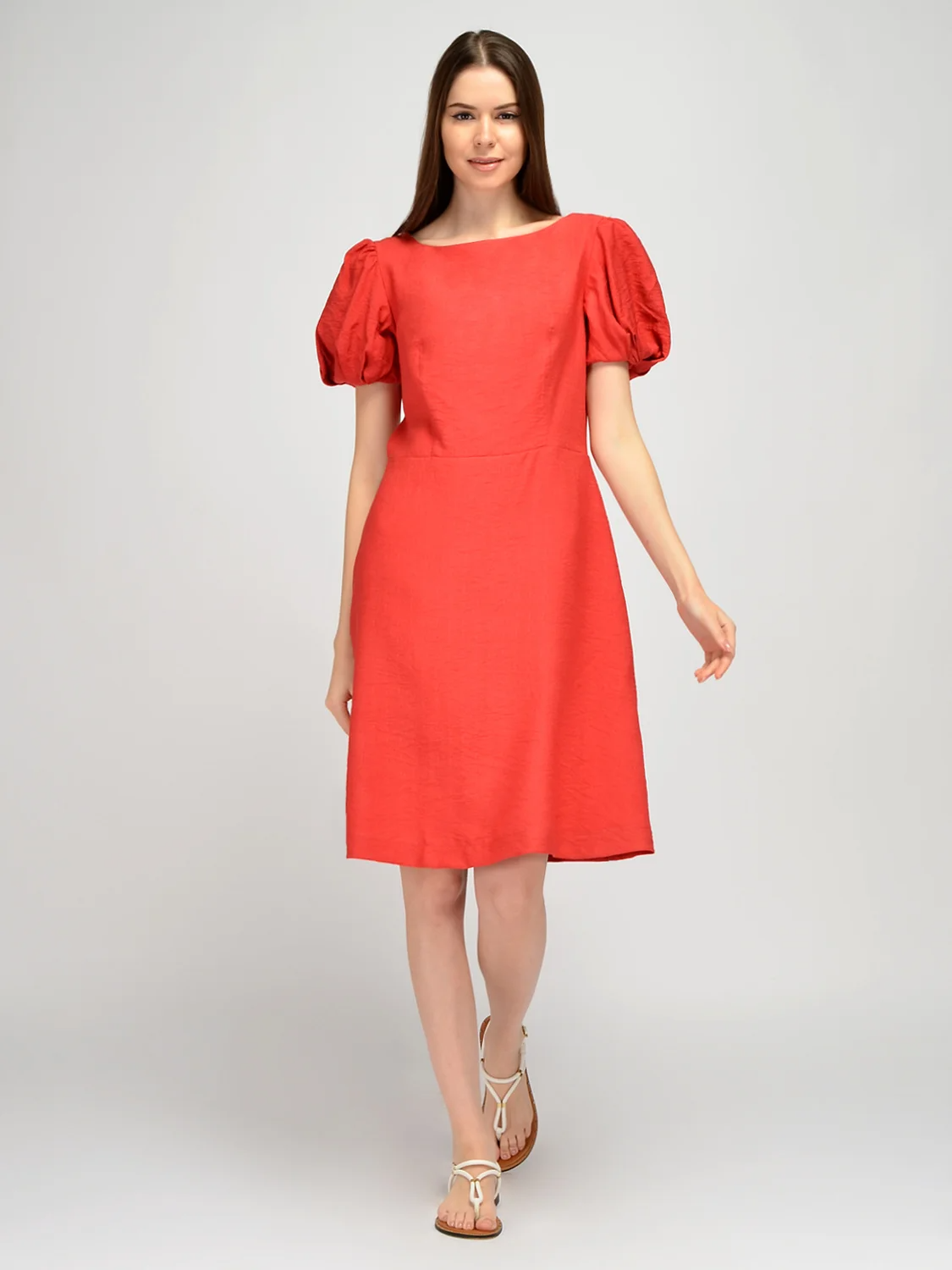 Летнее платье женское с короткими рукавами дополнит романтичные образы для работы или праздников. Изящный округлый вырез горловины лодочка приоткрывает ключицу. Короткие рукава фонарики являются изюминкой легкого платья. Объемные рукава со складками притягивают взгляд и дополняют кокетливый стиль. Приталенное платье миди с вертикальными вытачками от талии идеально сядет на любую фигуру и визуально вытянет силуэт. На спине располагается элегантный V-образный вырез и также вертикальные вытачки. Праздничное платье миди застегивается на потайную молнию. Свободное платье не облегает фигуру, скрывая ее возможные недостатки. Повседневное летнее платье выполнено из легкой дышащей ткани, позволяя Вашей коже дышать и чувствовать себя комфортно в течение всего дня в летний сезон. Лаконичный фасон подойдет как взрослым женщинам, так и молодым девушкам. Универсальная длина ниже колена придется по вкусу дамам любого роста. Легкое летнее платье будет прекрасно смотреться с обувью на высоком ходу, например, с туфлями-лодочками или босоножками. Если Вы собираетесь на торжественное мероприятие, завершите образ украшениями и аксессуарами.